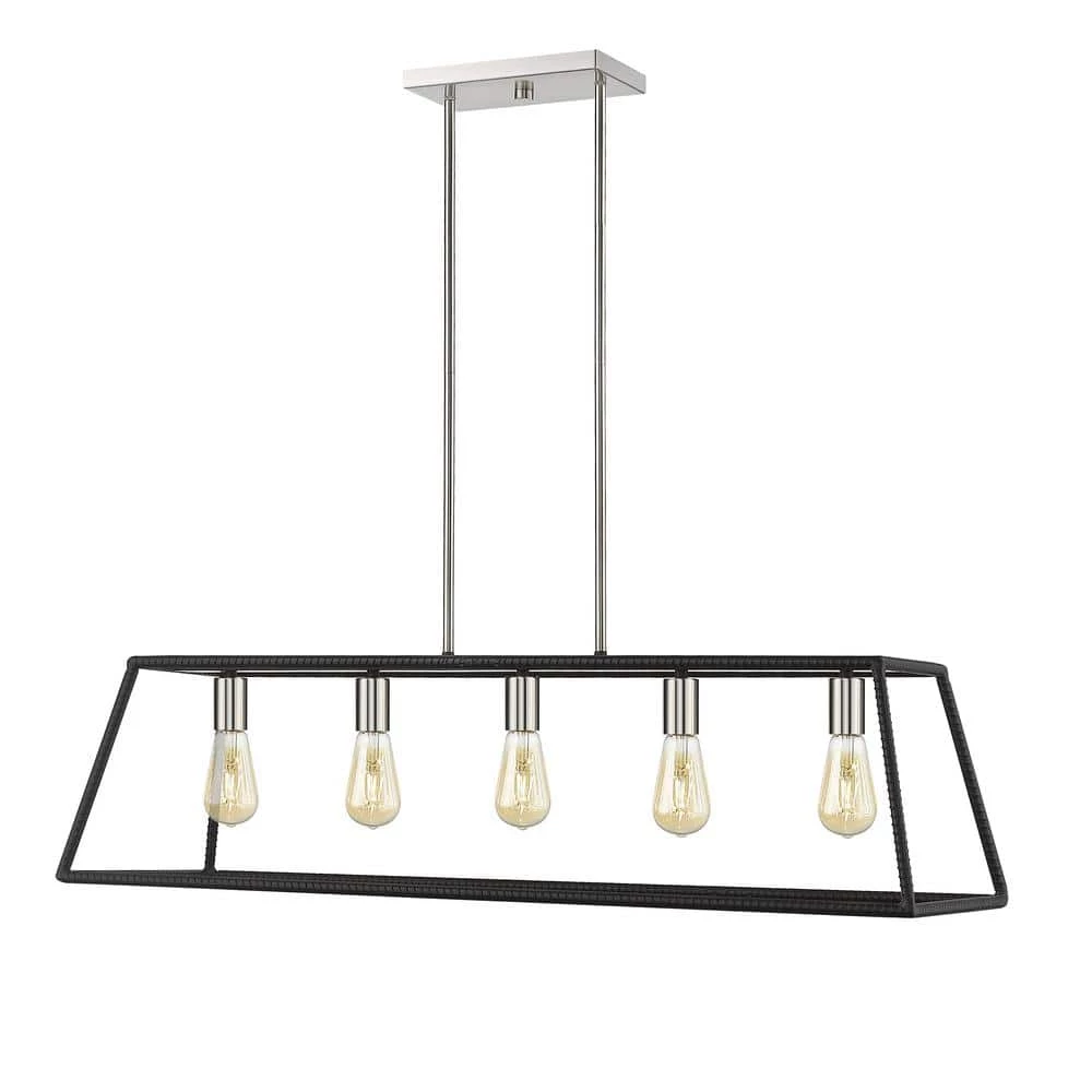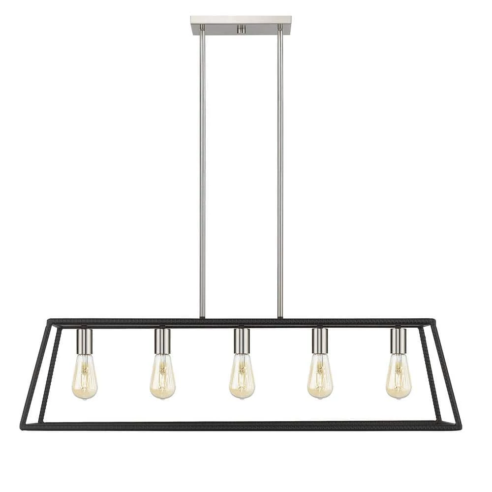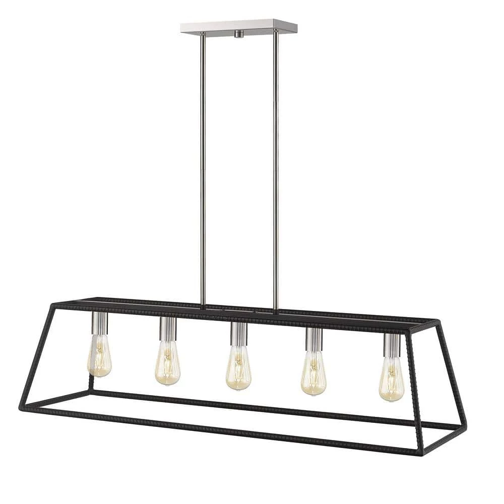 Featuring clean, simple styling, the Agnes 5-Light Black Pedant from OVE Decors adds a transitional look to your space. A beautiful possibility along a table or an island, this elongated framed fixture is beautifully sized at 38 in. L and 10 in. W. The subtle brushed finish will also allow the gorgeous included Edison style LED bulb to stand out as a beautiful detailing and warmly illuminate any surrounding.