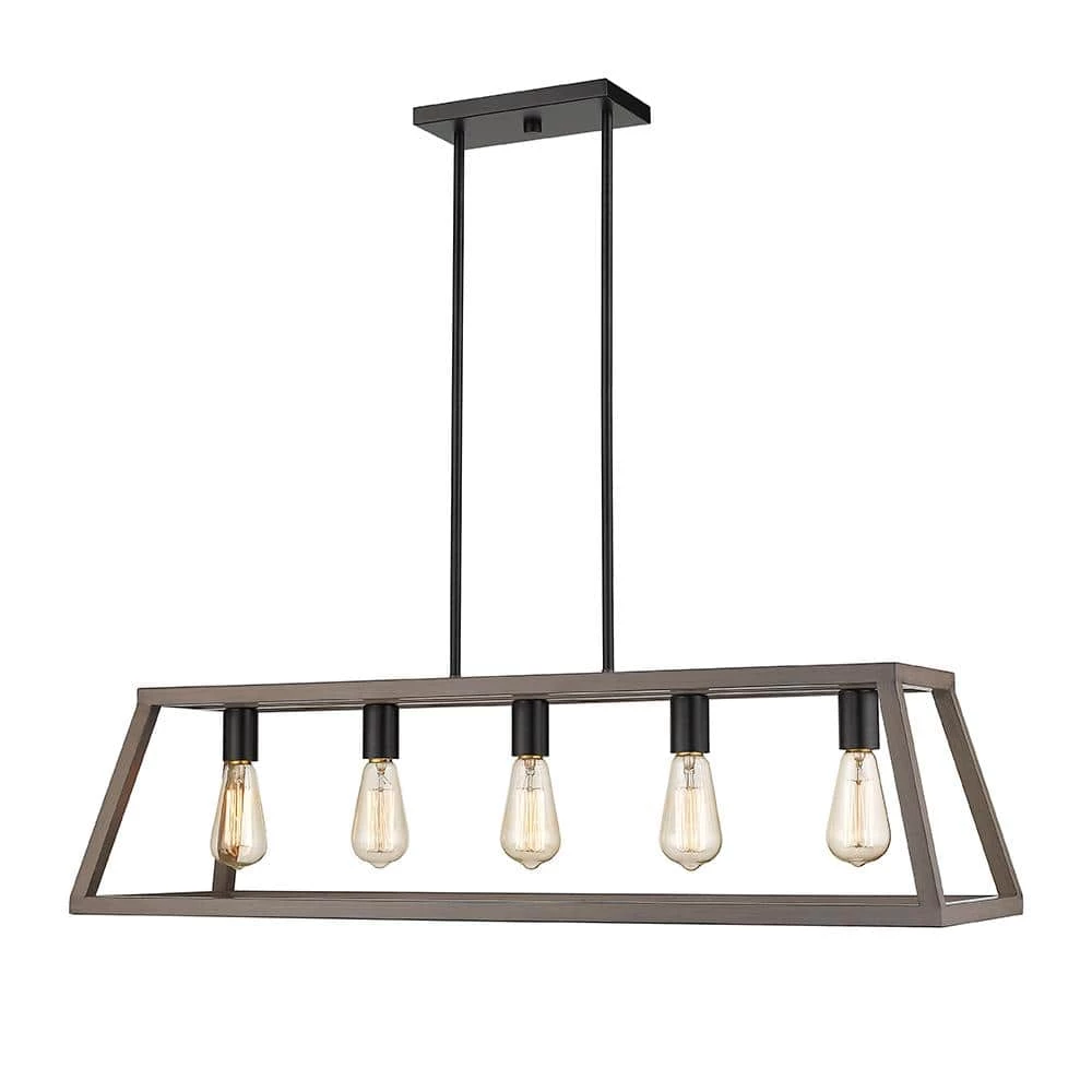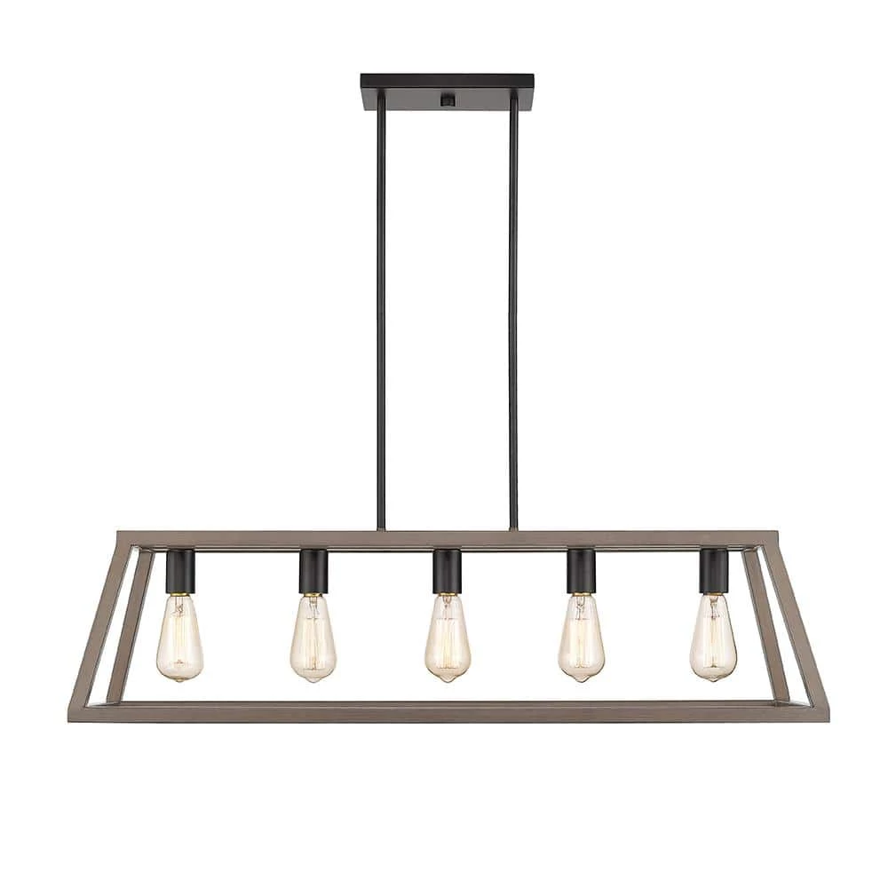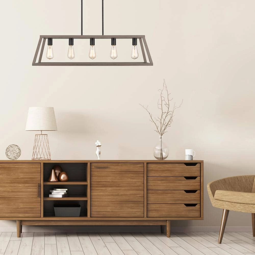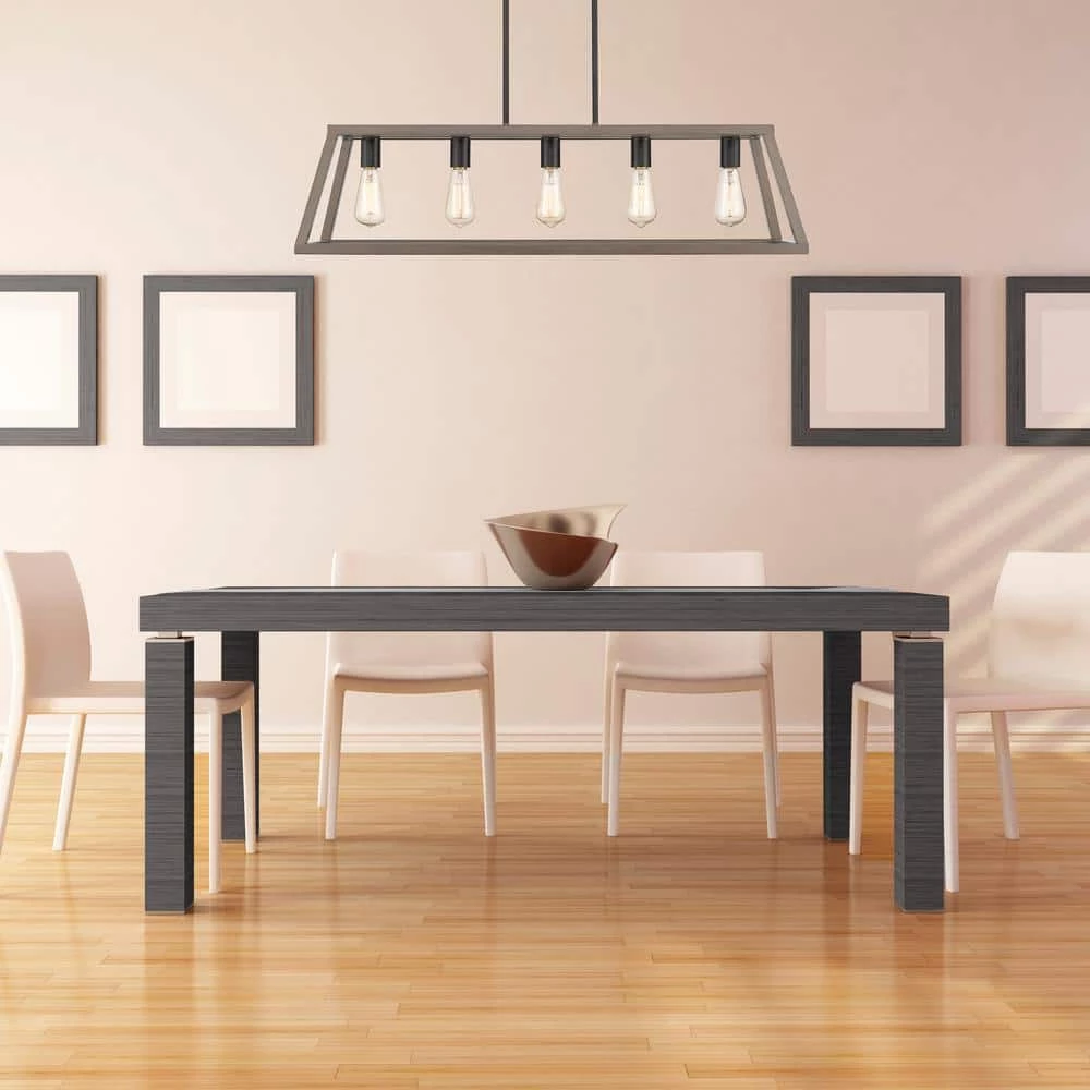 Featuring clean, simple styling, the Agnes II 5-Light Matte Black and Wood Painting Pendant from OVE Decors adds an industrial farmhouse look to your space. A beautiful possibility along a table or an island, this elongated frame fixture is beautifully sized at 38 in. L and 10 in. W. The subtle matte finish will also allow the gorgeous included Edison style LED bulb to stand out as a beautiful detailing and warmly illuminate any surrounding.
