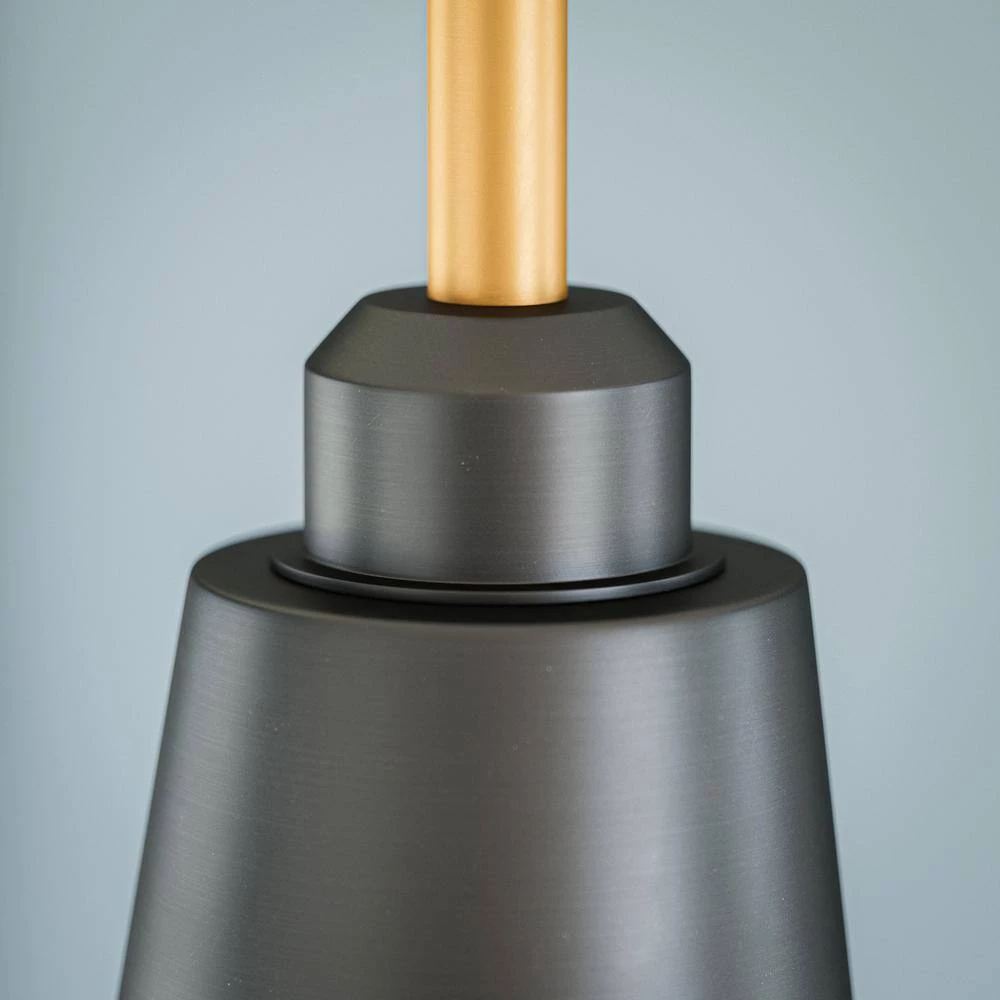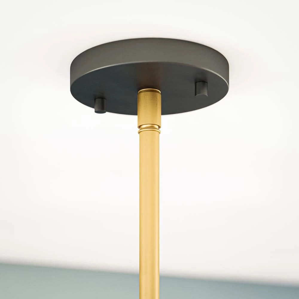 Featuring a mid-century modern vibe, this gorgeous and glamorous lighting family elegantly blends mid-century modern appeal with the sleek and graduated lines of art deco themed decor. The Alvar collection glistens and shimmers thanks to its two-toned finish of matte black complemented with lustrous antique brass accents. The glamorous appeal is further accentuated by the slant cut form of each shade, allowing the contrasting and shimmering golden antique brass interior to peek through against the dark and mysterious matte black exterior.