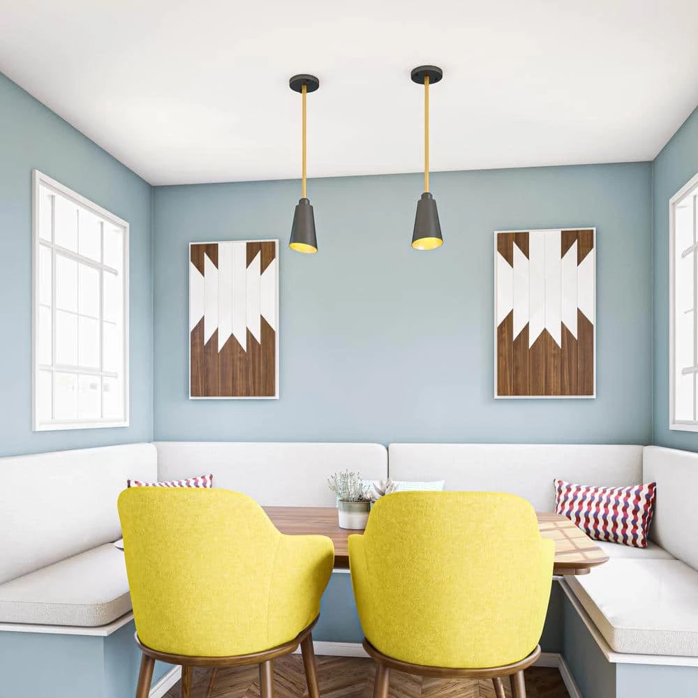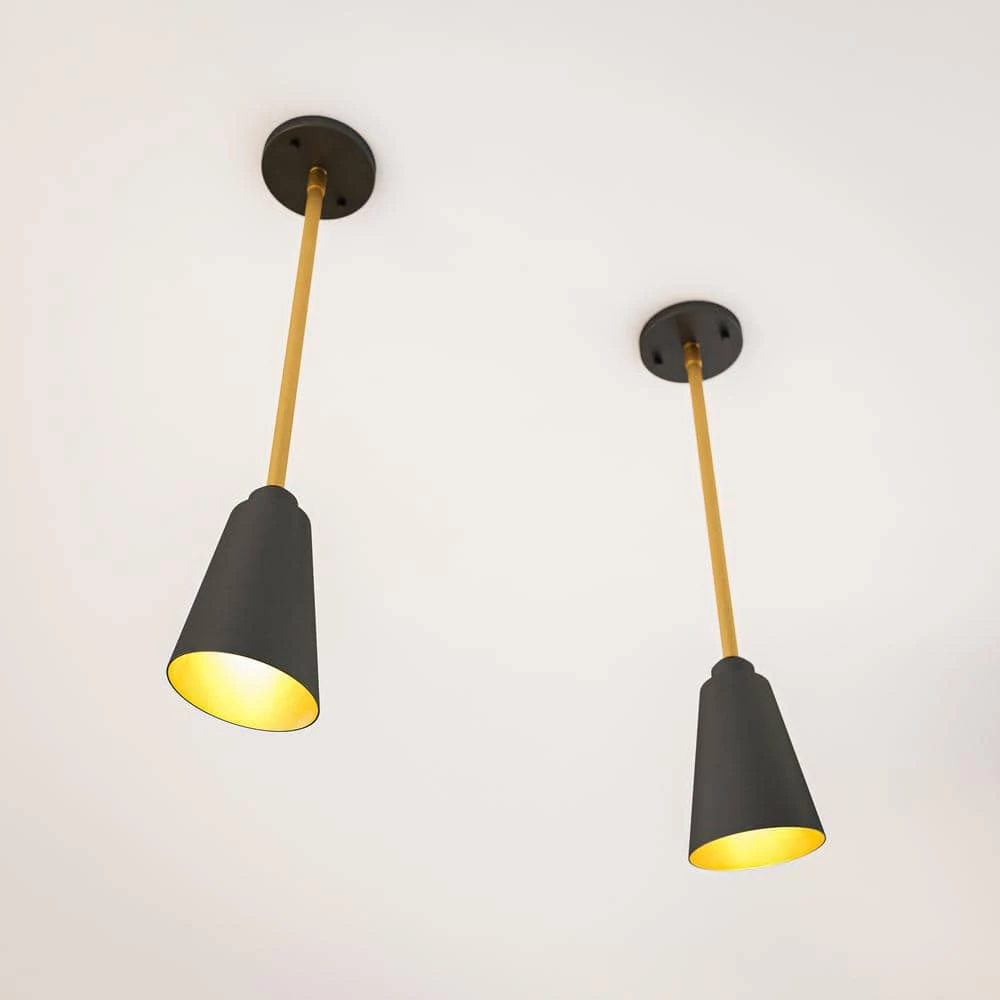 - LIGHTING PROFILE: Metal shades create a downward directional room-filling light that’s made brighter by the reflective brass inner finish of the shade.