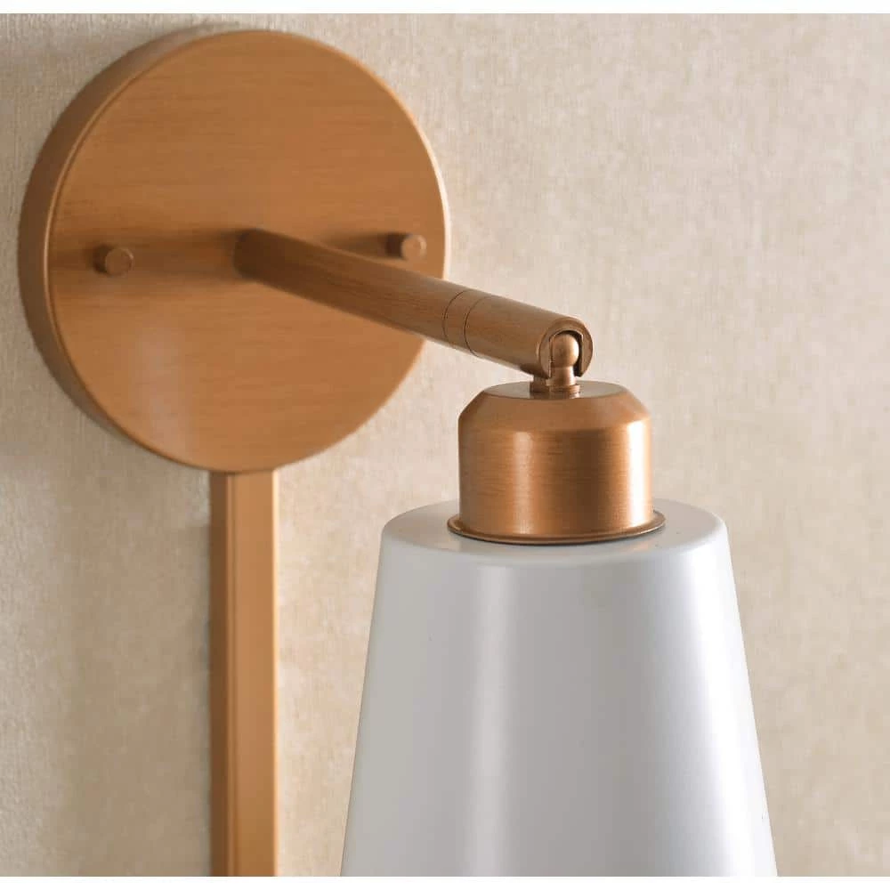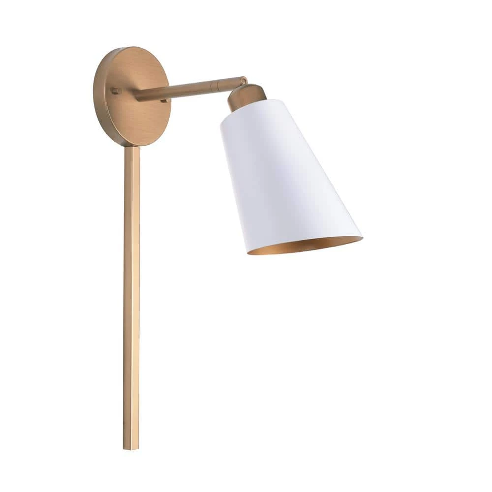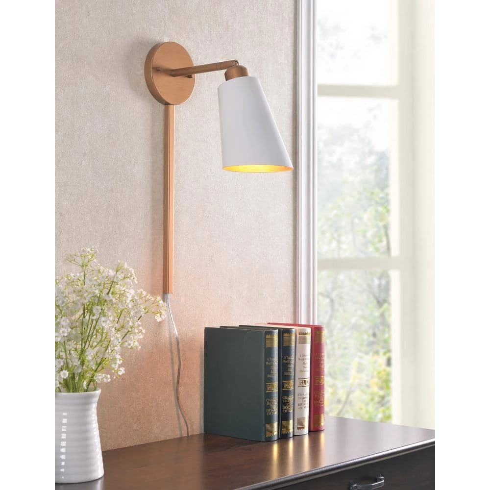 Bright and oh-so-shiny with Contemporary Glam charm, this sleek Art Deco-inspired sconce shimmers and shines thanks to the gold inner finish of the crisp white slant-cut shade. The clean-lines and unique slant cut of the shade gives this lamp a modern feel, perfect for an industrial urban loft or a retro-contemporary bedroom. This posh wall sconce provides strong, directional lighting perfect for use beside your bed as a late-night reading light. Including mounting hardware and cord covers, you can skip the hassle of hardwiring and simply use the plug to power your lamp, making this lamp perfect for renters or new home owners.