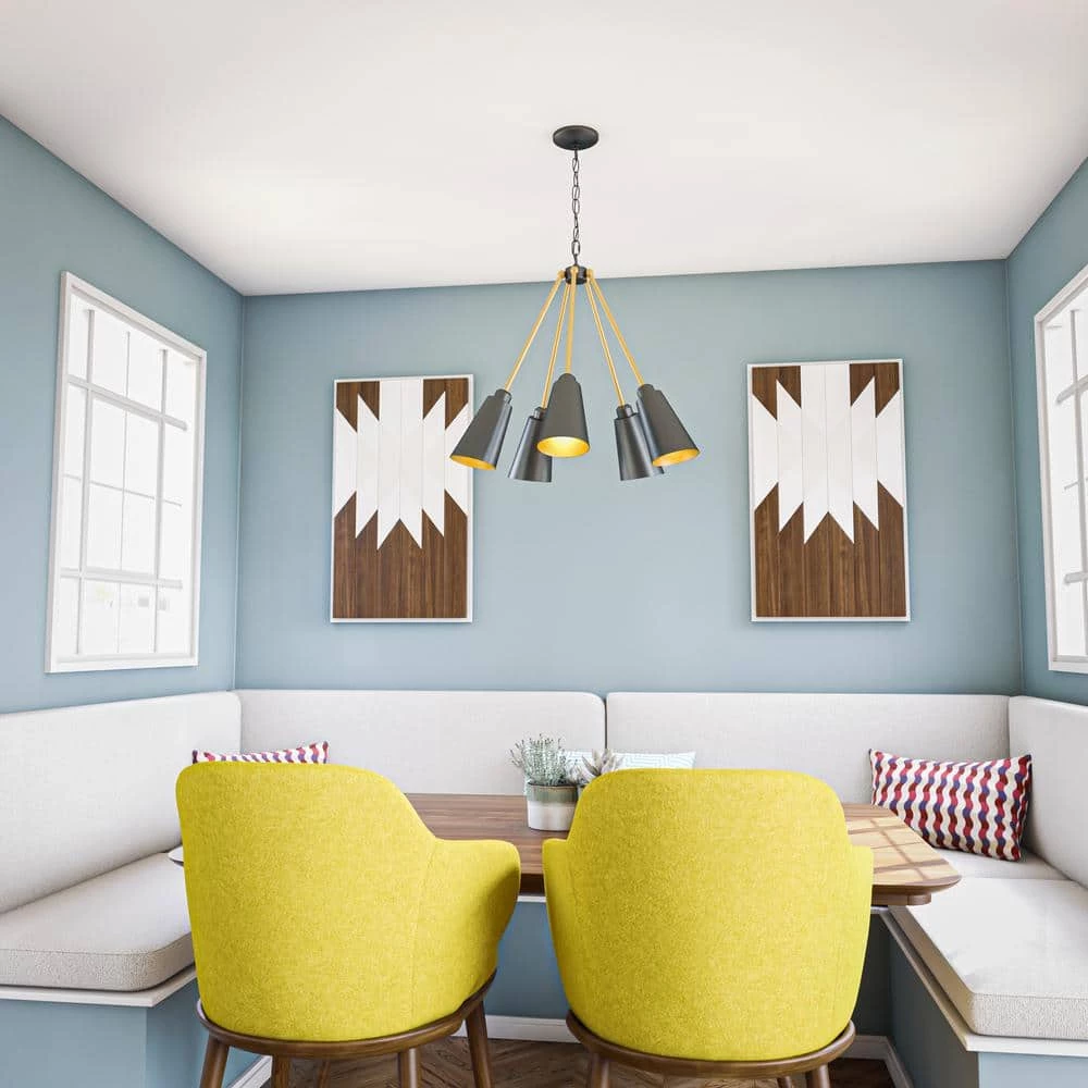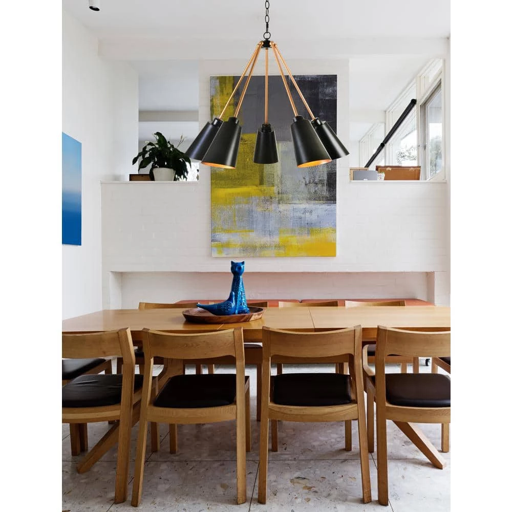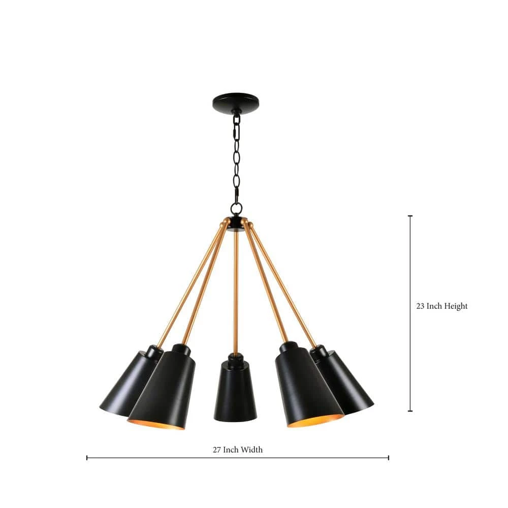 Enhance your bathroom interior with this Alvar 5-Light Black Chandelier. The black finish with distinctive brass detail creates a modern look. With this fixture’s adjustable hanging length, you can customize to the fit you want. Included hardware and instructions allow a convenient installation.