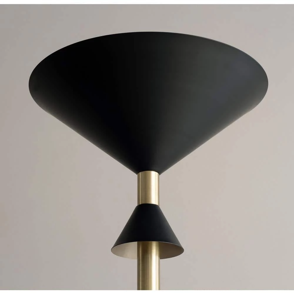 - Matte black and polished antique brass finish complements mid-century modern, retro, glam, luxe, modern, contemporary and eclectic design