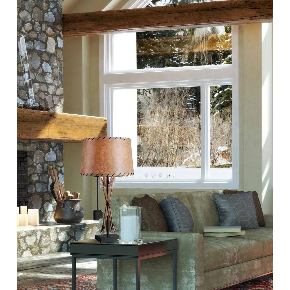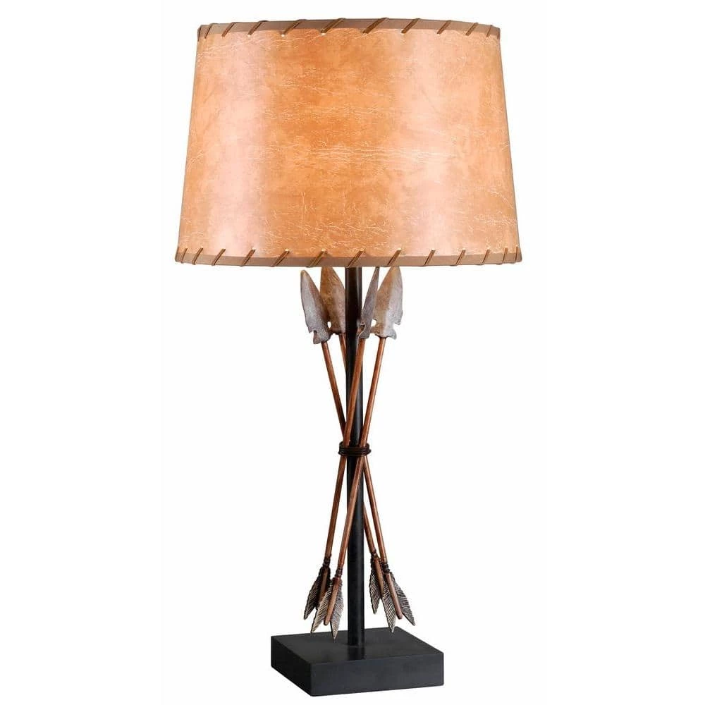 Bound Arrow has a unique tribal twist. This table lamps base has 4 arrows surrounded the body of the lamp. With an antique wash finish, this table lamp will be a tribal inspired look to any room.