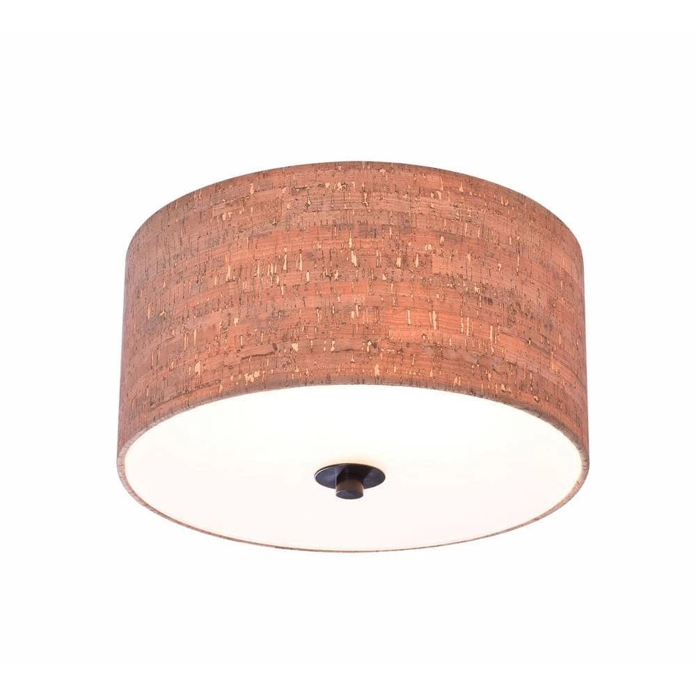 Add a touch of creative flare to your home with the Bulletin 2-light flush mount. With a unique balance between natural and man-made materials, the flush mount represents an exceptionally artful contemporary and casual light combination. The light features an oil rubbed bronze finish paired with a stunning cork shade. The contrast between a dark finish with a much lighter shade makes this fixture a stand out feature in any room. At 13 in. in diameter, the flush mount would be the perfect lighting solution to hang over a modern dark-toned eating area in need of some light or to be hung in a sleek entryway, welcoming you home with warm light. With numerous possibilities and places to be hung, the Bulletin 2-light flush mount may just be the perfect lighting fixture for your space.