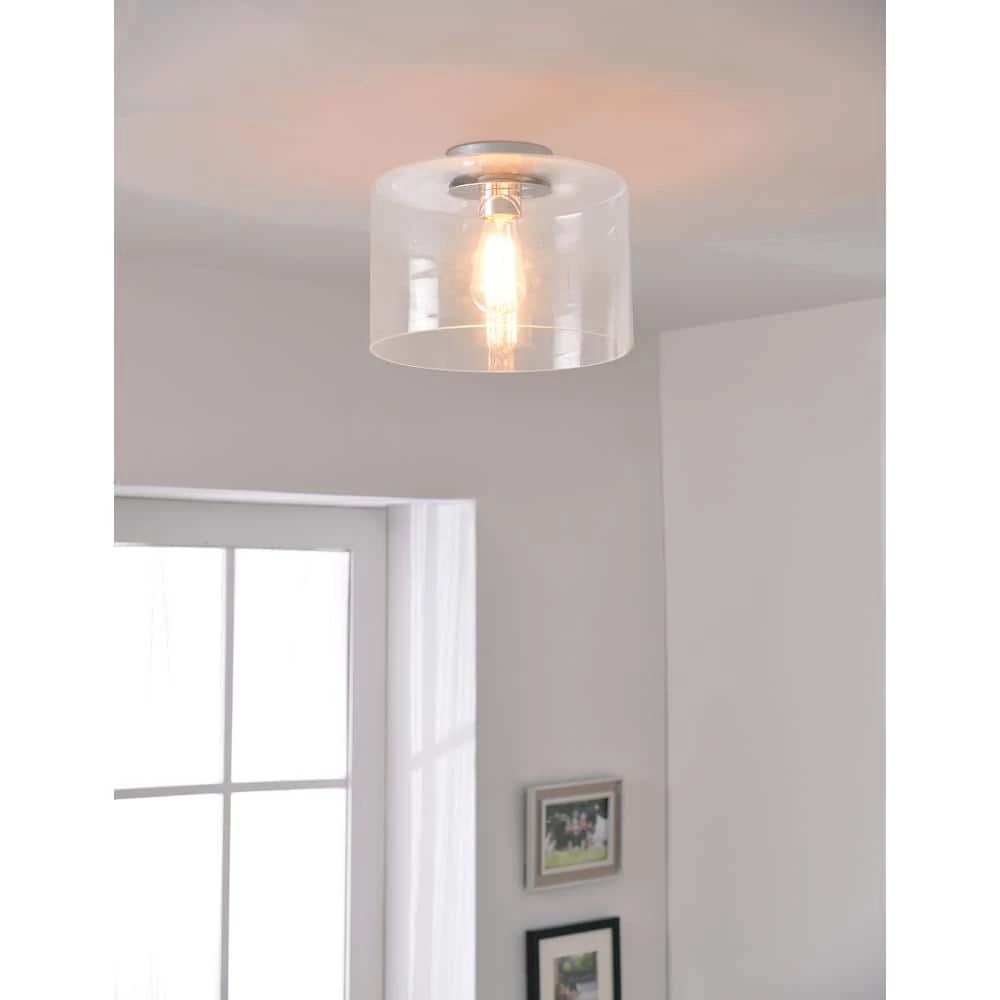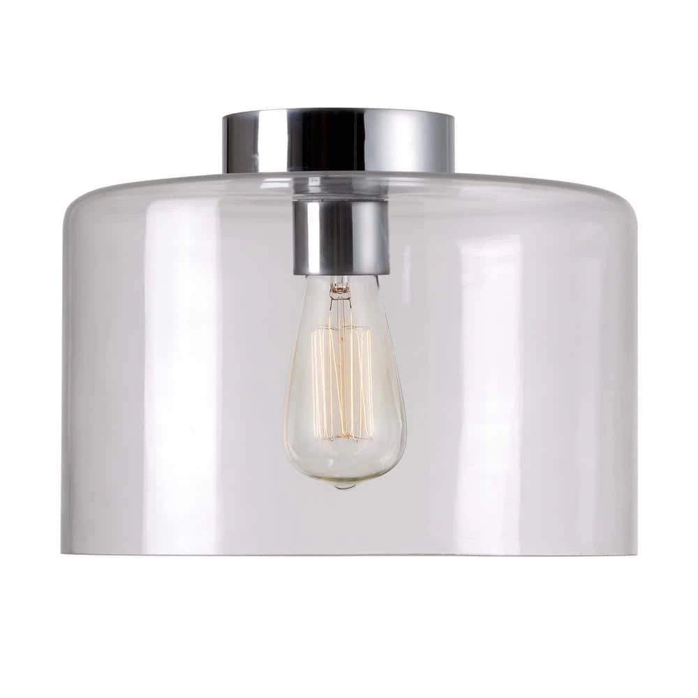 Contemporary with a lustrous chrome and crystal clear shade, this versatile flush mount provides the perfect accent lighting for any home. Especially well-suited to small spaces, the crystal-clear glass shade allows room-filling illumination while lending itself to a wide variety of styles. Picture the minimalist light illuminating your modern farmhouse dining table, or imagine a vintage-styled Edison bulb illuminating from within the dynamic glass to set a rustic atmosphere for your industrial-modern bar. With the crisp, clean lines and glossy glass, the design possibilities are truly endless.