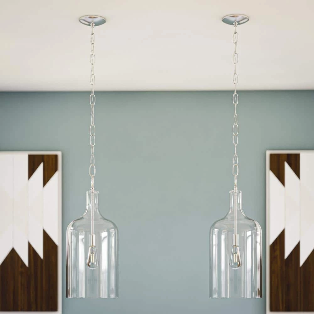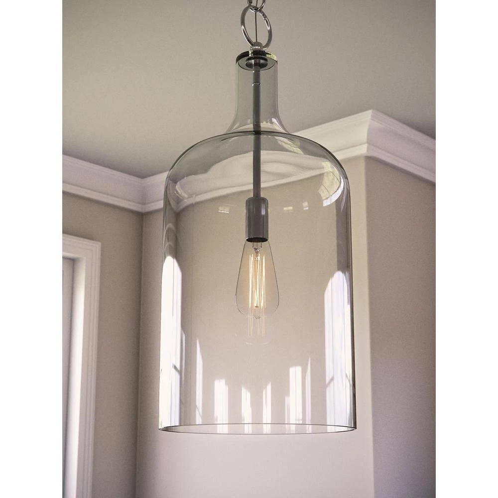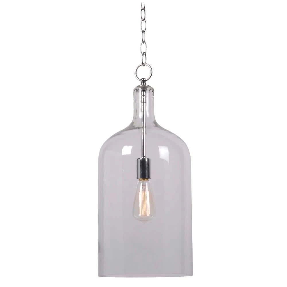 Vintage-inspired forms with a modern finish, this pendant provides the perfect accent lighting for any home. Especially well-suited to small spaces, the crystal-clear glass shade allows room-filling illumination while lending itself to a wide variety of styles. Picture the jug-shaped pendant over your cottage chic dining table, or imagine a vintage-styled Edison bulb illuminating from within the dynamic glass to set a rustic atmosphere for your industrial-modern bar. With the crisp, clean lines and glossy glass, the design possibilities are truly endless.