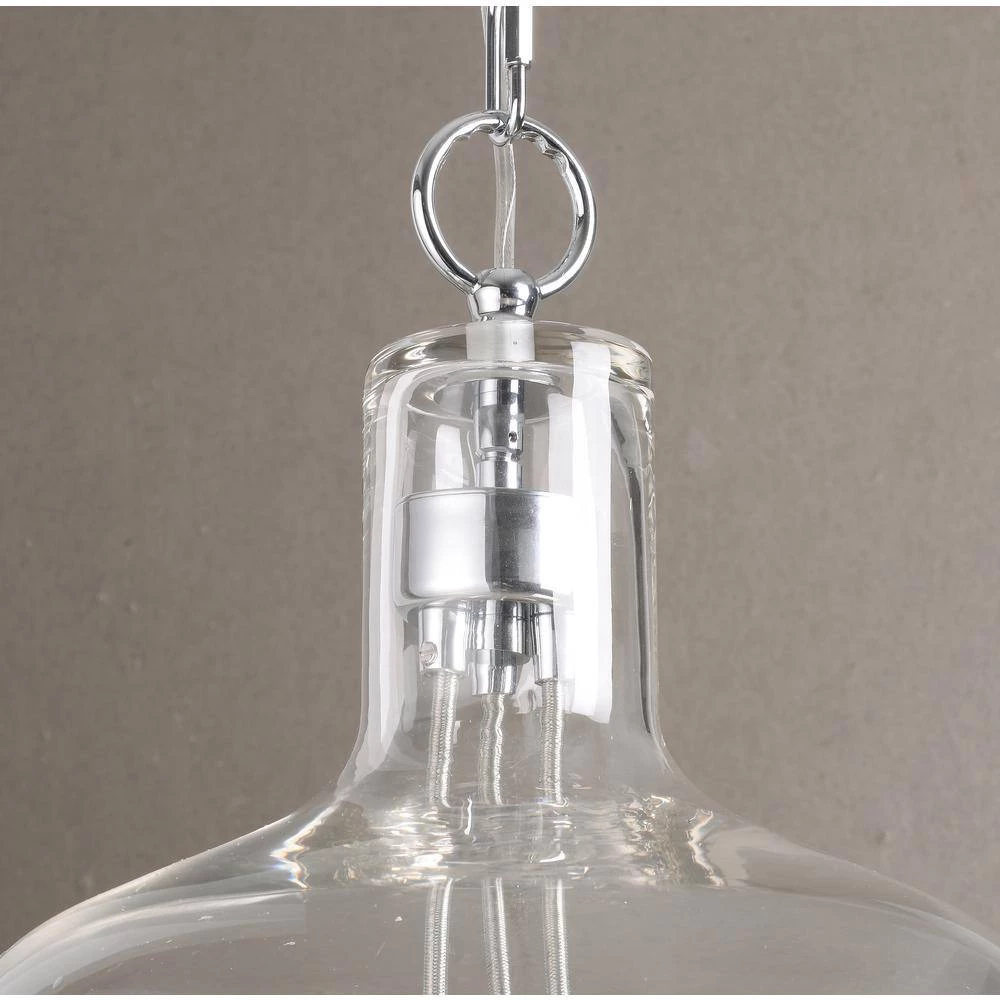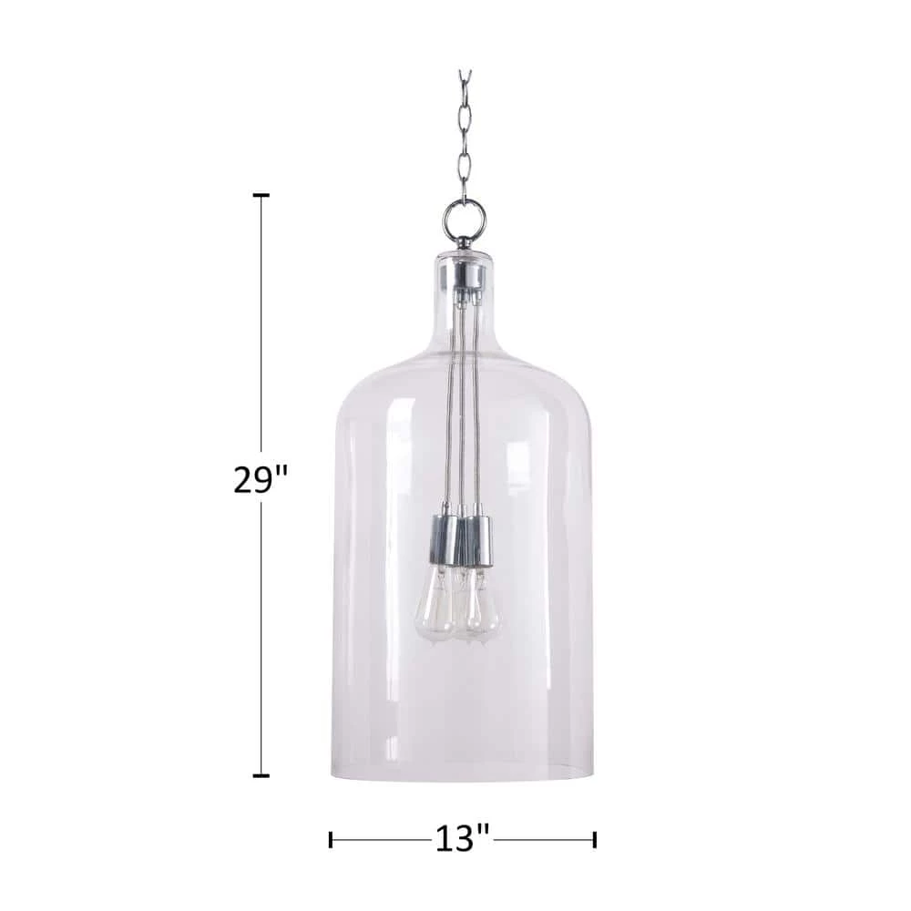 Vintage-inspired forms with a modern finish, this extra-large 3-light pendant provides the perfect accent lighting for any home. The crystal-clear glass shade allows room-filling illumination while lending itself to a wide variety of styles. Picture the jug-shaped pendant over your cottage chic dining table, or imagine 3 vintage-style Edison bulbs illuminating from within the dynamic glass to set a rustic atmosphere for your industrial-modern bar. With crisp, clean lines and glossy glass, the design possibilities are truly endless.
