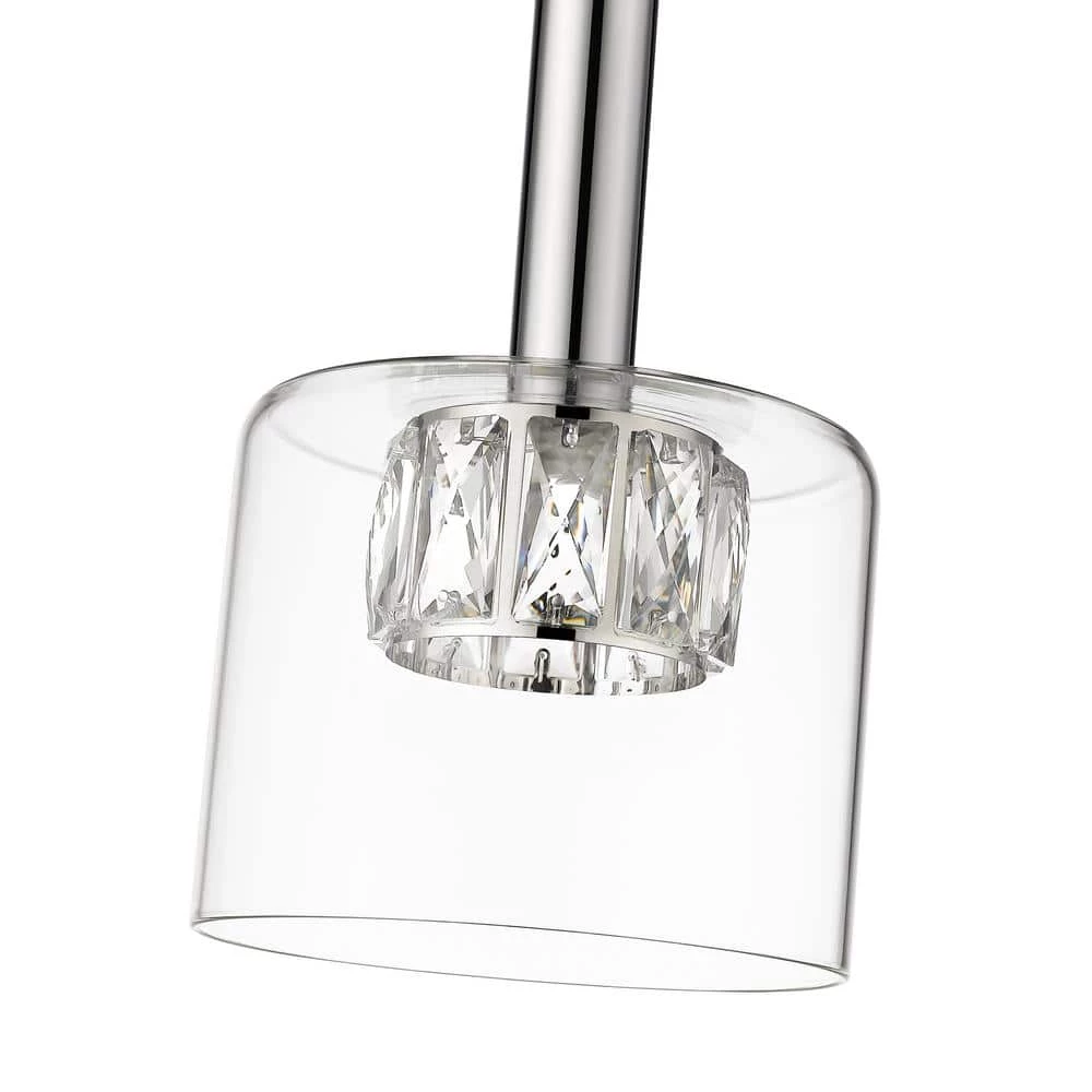 Contemporary style goes glam with the Cider II mini pendant light by OVE Decors. With its polished chrome fittings, clear glass cylinder shade and gorgeous interior faceted crystal diffuser, the Cider II adds pizazz plus the comfort of never changing a bulb, thanks to its dimmable warm white LED integrated design. Admire it over your kitchen sink or group a trio over a kitchen island, knowing its adjustable height power cable allows you to custom fit the mini pendant’s position to perfectly task light your space.