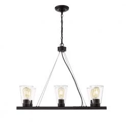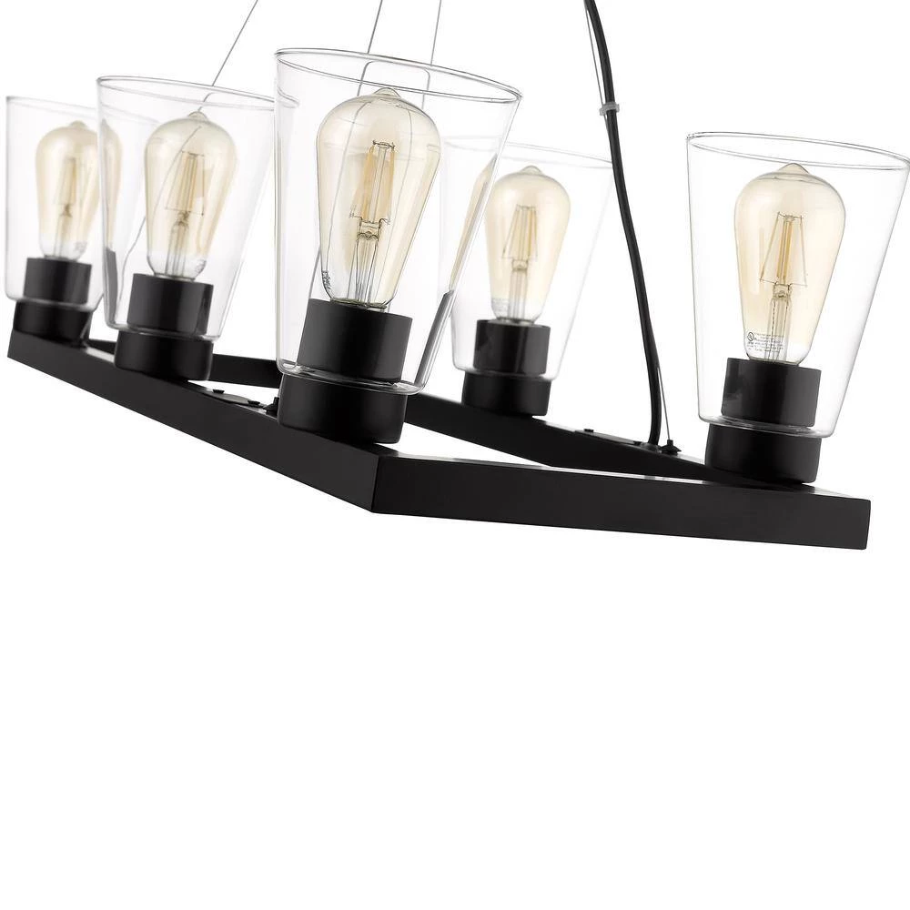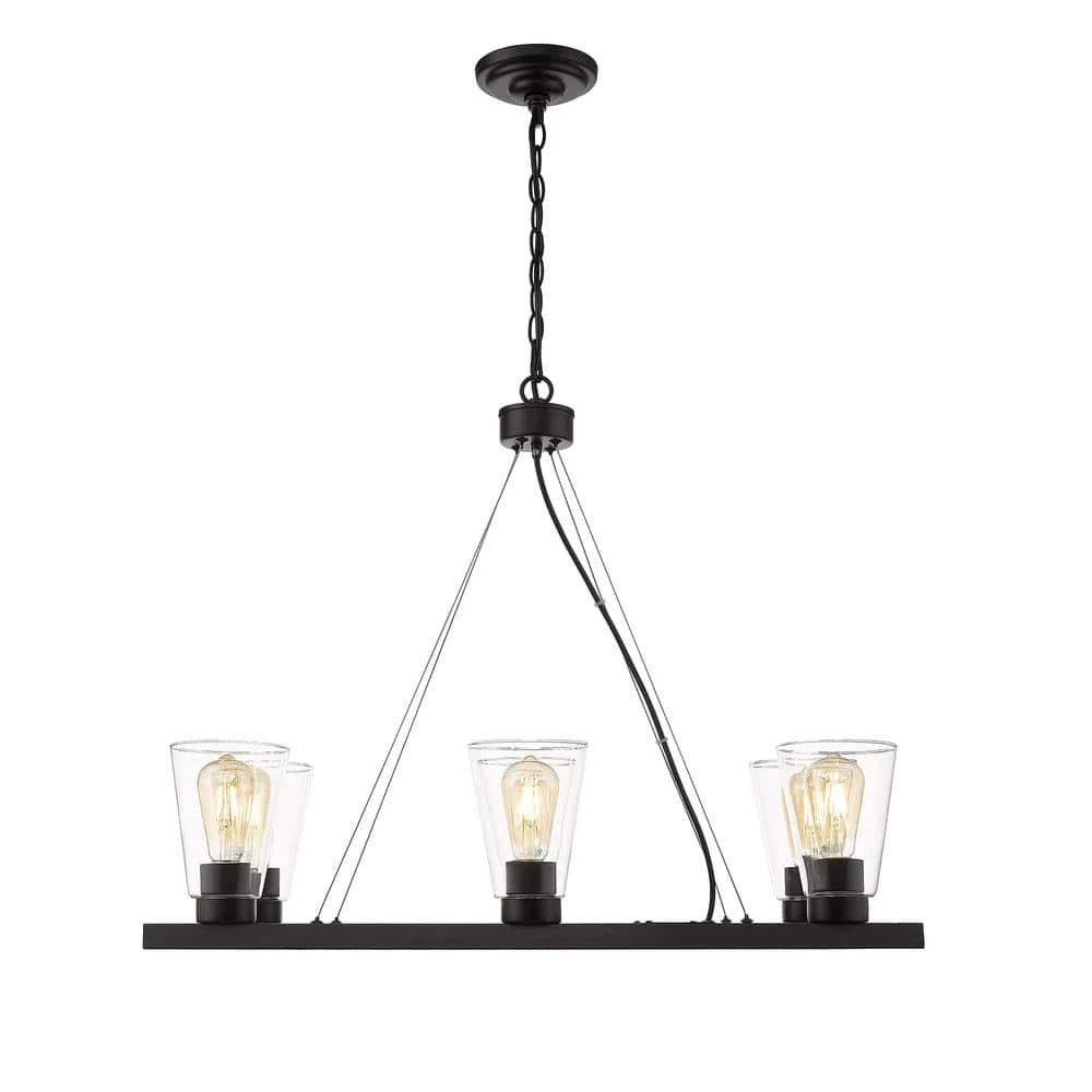 Polished minimalism shines in the Clark VI 6-light rectangular linear chandelier by OVE Decors. with its modern clear glass conical upright shades and iron black finished fittings, the Clark adds a simple and serene touch to any room. 6 vintage inspired warm white exposed filament ENERGY STAR certified LED bulbs are fully dimmable for perfect task lighting over your kitchen island or inviting ambiance in your dining room.