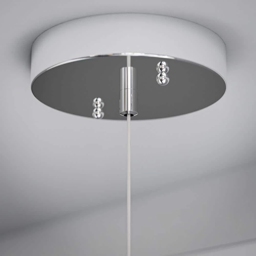 - Crisp white silk shade creates a brightly diffused glow, while chrome hardware adds a highly reflective modern touch
