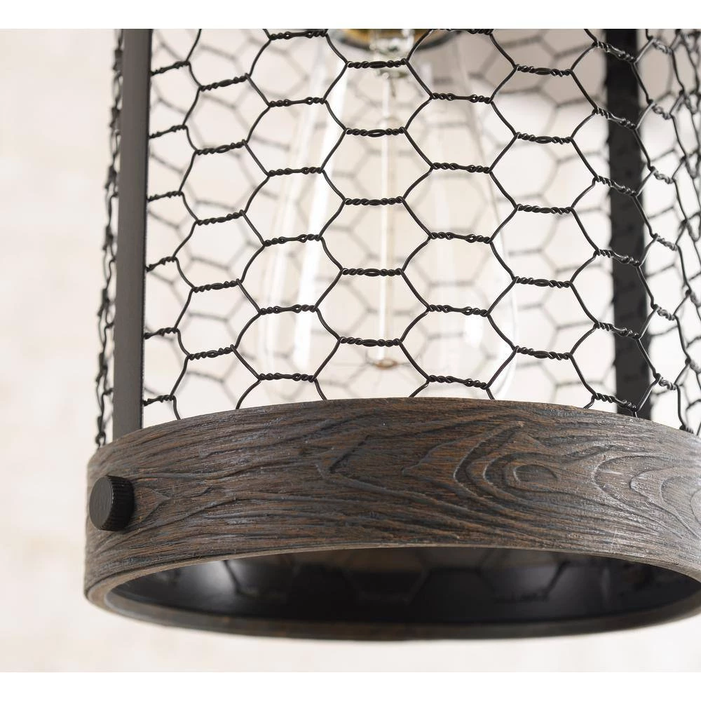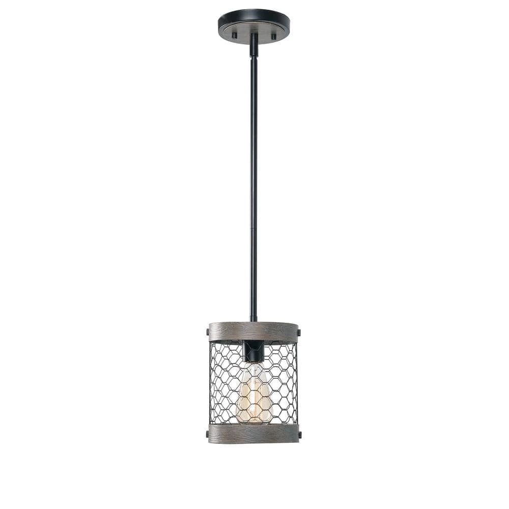 Rustically industrial with a unique open framed body of chicken wire and a sophisticated oil rubbed bronze finish, this modern farmhouse 1 light mini pendant drives home the country charm while brightly illuminating your cozy dining room. The chicken wire shade allows light to flow freely, while the adjustable height makes this fixture both vaulted and sloped ceiling compatible for a bright, textured glow.