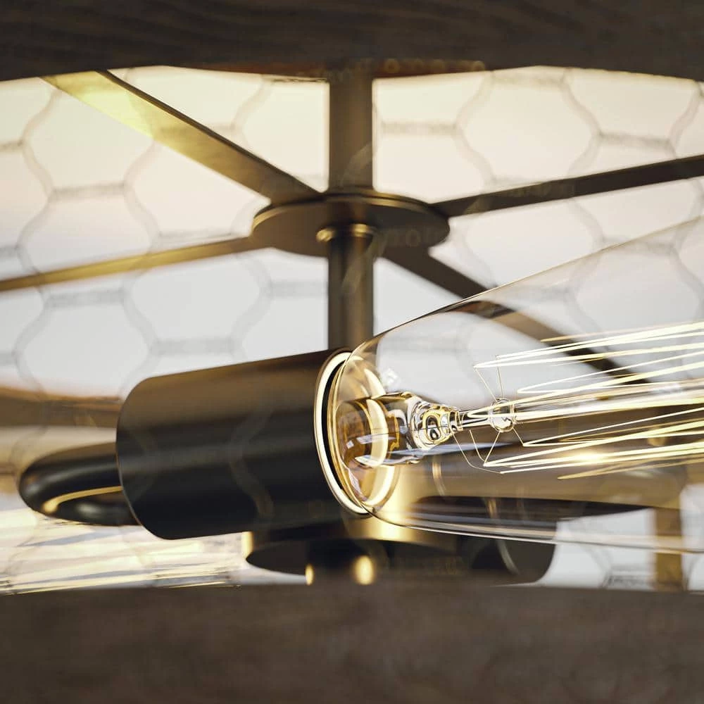 Rustically industrial with a unique open framed body of chicken wire and a sophisticated oil rubbed bronze finish, this modern farmhouse 2 light flush mount drives home the country charm while brightly illuminating your cozy living room.