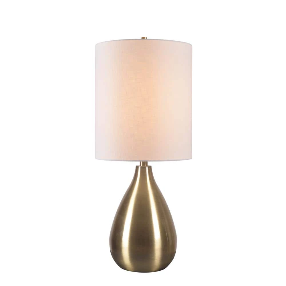 Water rolling down the window during thunderstorms pauses time for just a moment. The Droplet table lamp seeks to do the same through its simple and sleek design. At 29 in. high, the lamps body is that of a water droplet, presenting a soft, modern light that would fit perfectly on a bedside table in a light-toned room. The antique brass finish coupled with the cream shade help to further tie the soft look of this lamp together in a complementary manner. Light glistens off of the antique brass, providing cozy lighting to your contemporary space. Whether your room is ultra-modern in whites and neutral tones or you’re a newly moved out human who needs just a touch of soft light to a space, the Droplet table lamp will suit sleek lighting needs.