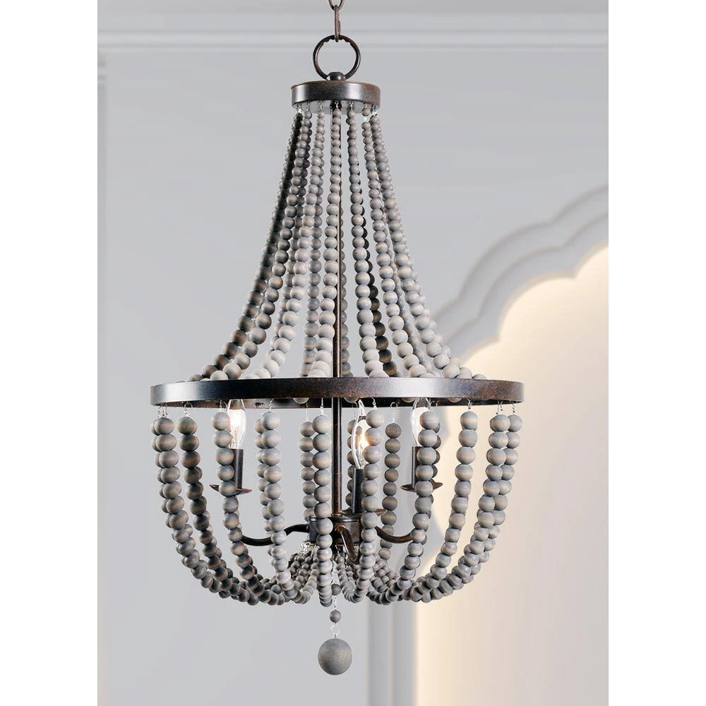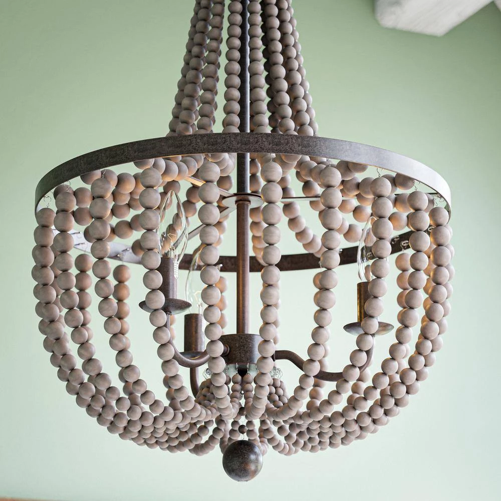- Boho 3 light chandelier with light wood bead strands