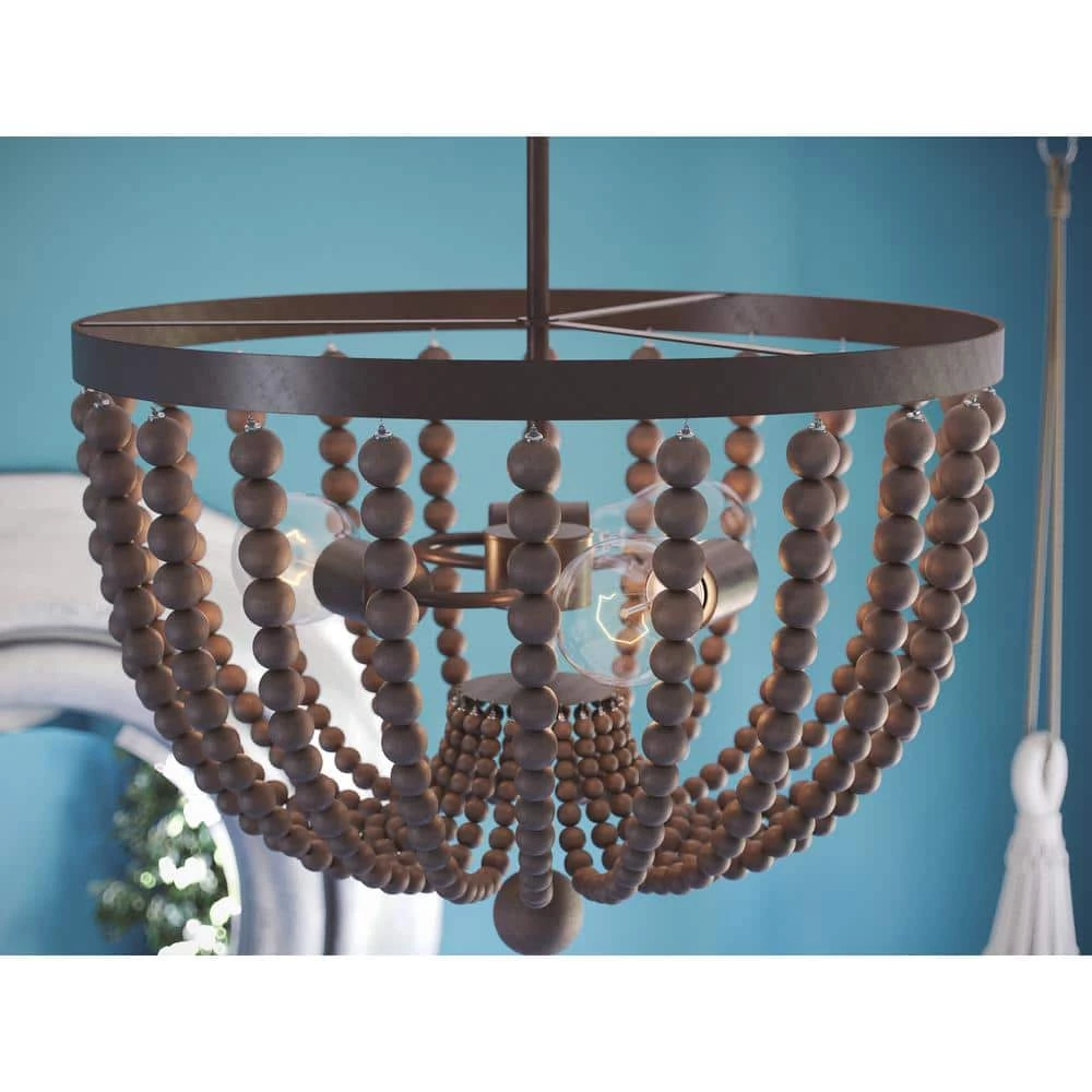 - Rich golden bronze finish with gray wood beads