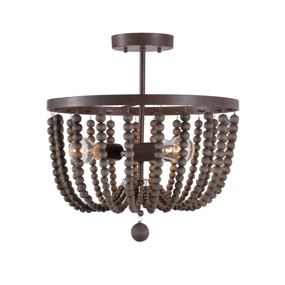 Dramatic looks in a space saving design – this beaded semi flush mounted light is perfect for those looking to bring bold bohemian style to their hallways, bedrooms, entryways and more. The low 17-inch height doesn’t necessarily sacrifice style for extra space – this flush mount features distressed gray wood beads elegantly draped around three central lights, finished with a large bed drop hanging down the middle. Expertly well-suited for smaller apartments, condos and townhomes or anywhere with low ceilings, this versatile design perfectly complements bohemian, eclectic and transitional design.