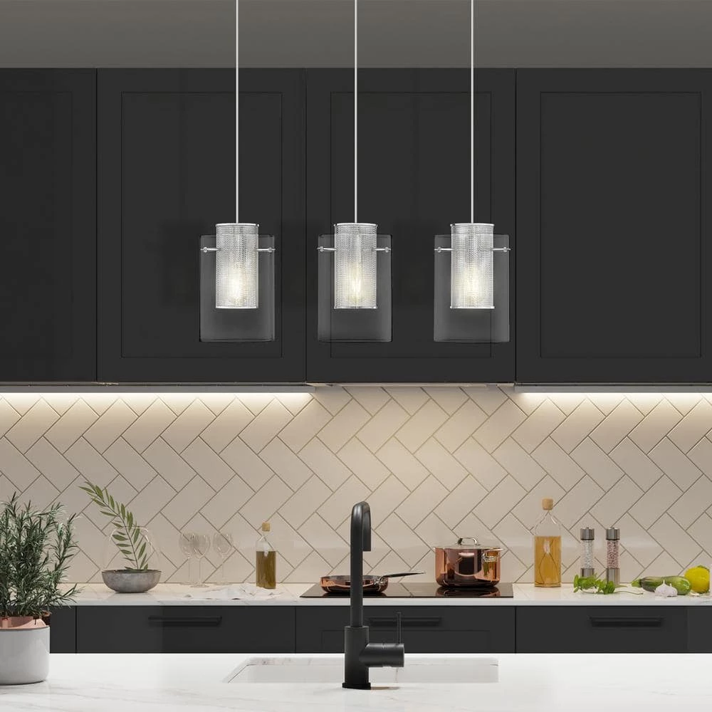 The Elestren pendant ceiling light takes a modern hanging pendant silhouette. Adds a chic finish thanks to its semi-obscured bulbs enveloped by mesh frames and enlarged glass shades. Hanging from high quality, durable power cable wires, each pendant exudes a warm ambient light from its modern material construction, coming together to create a light feature that is versatile enough to either be installed in isolation as a singular fixture, or in multiples to fully illuminate a room.