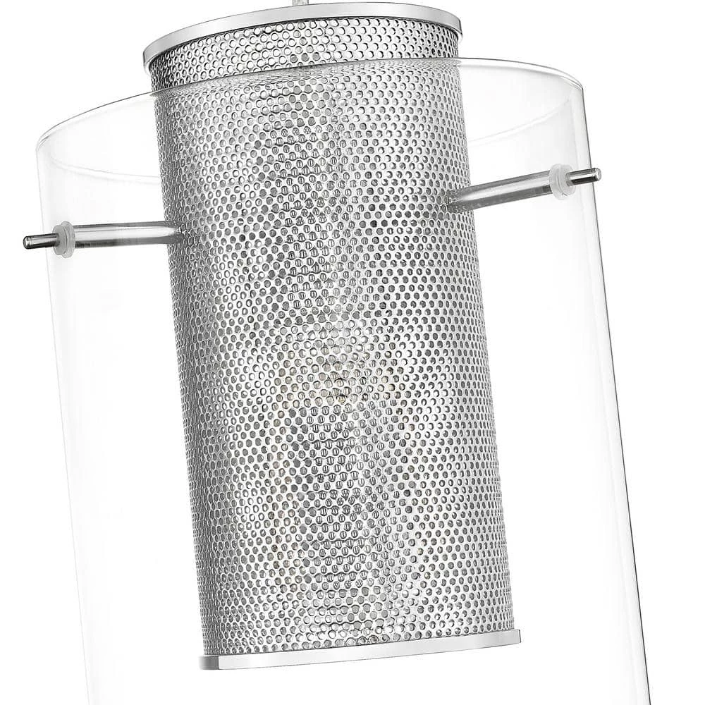 - Clear glass shade over a mesh frame gives an obscured light finish resulting in a warm ambience
