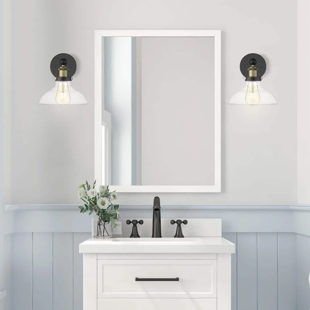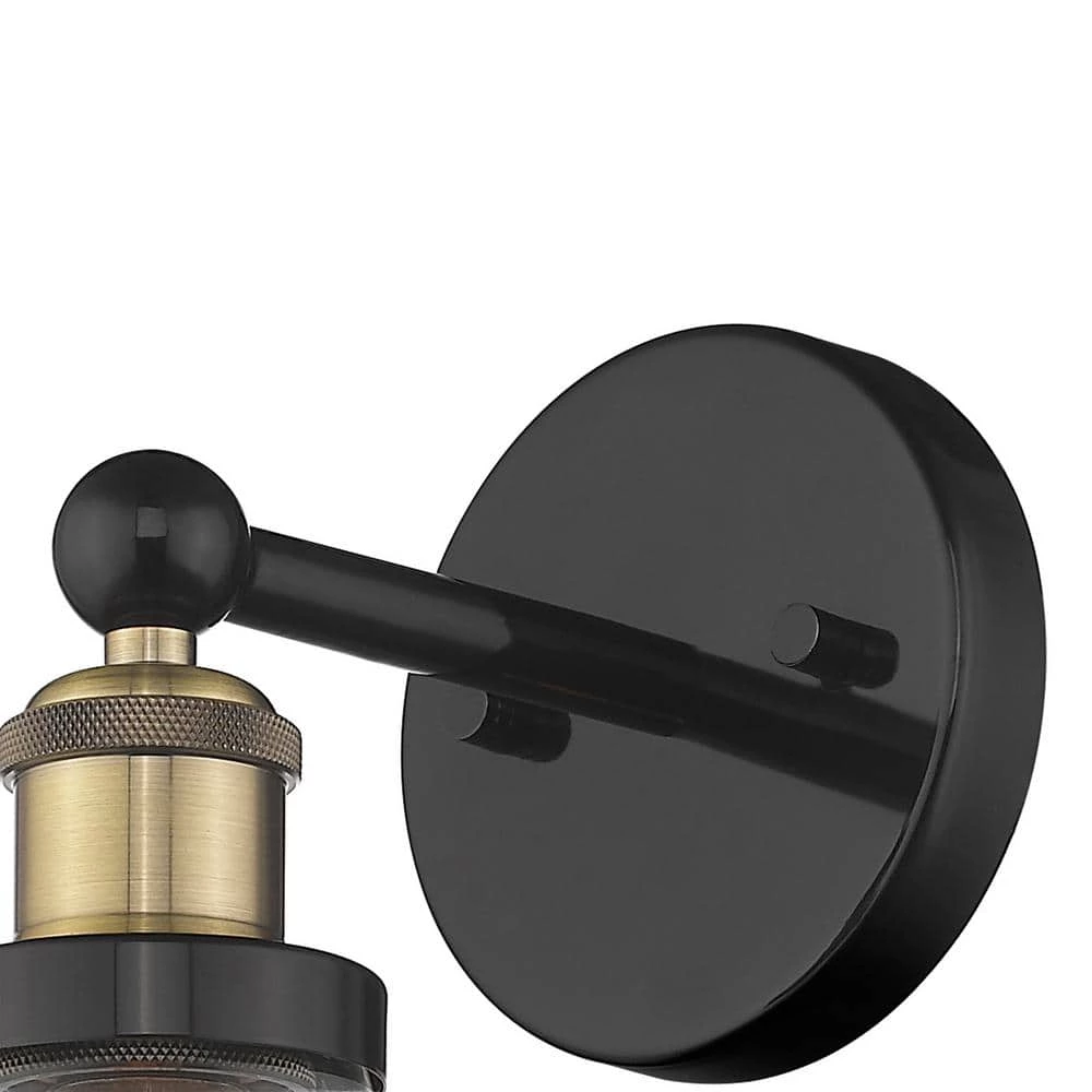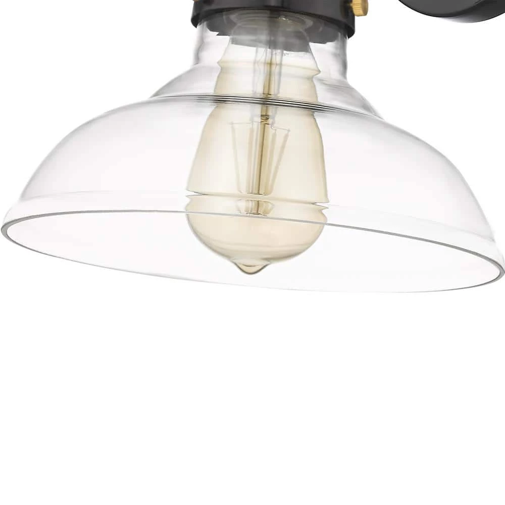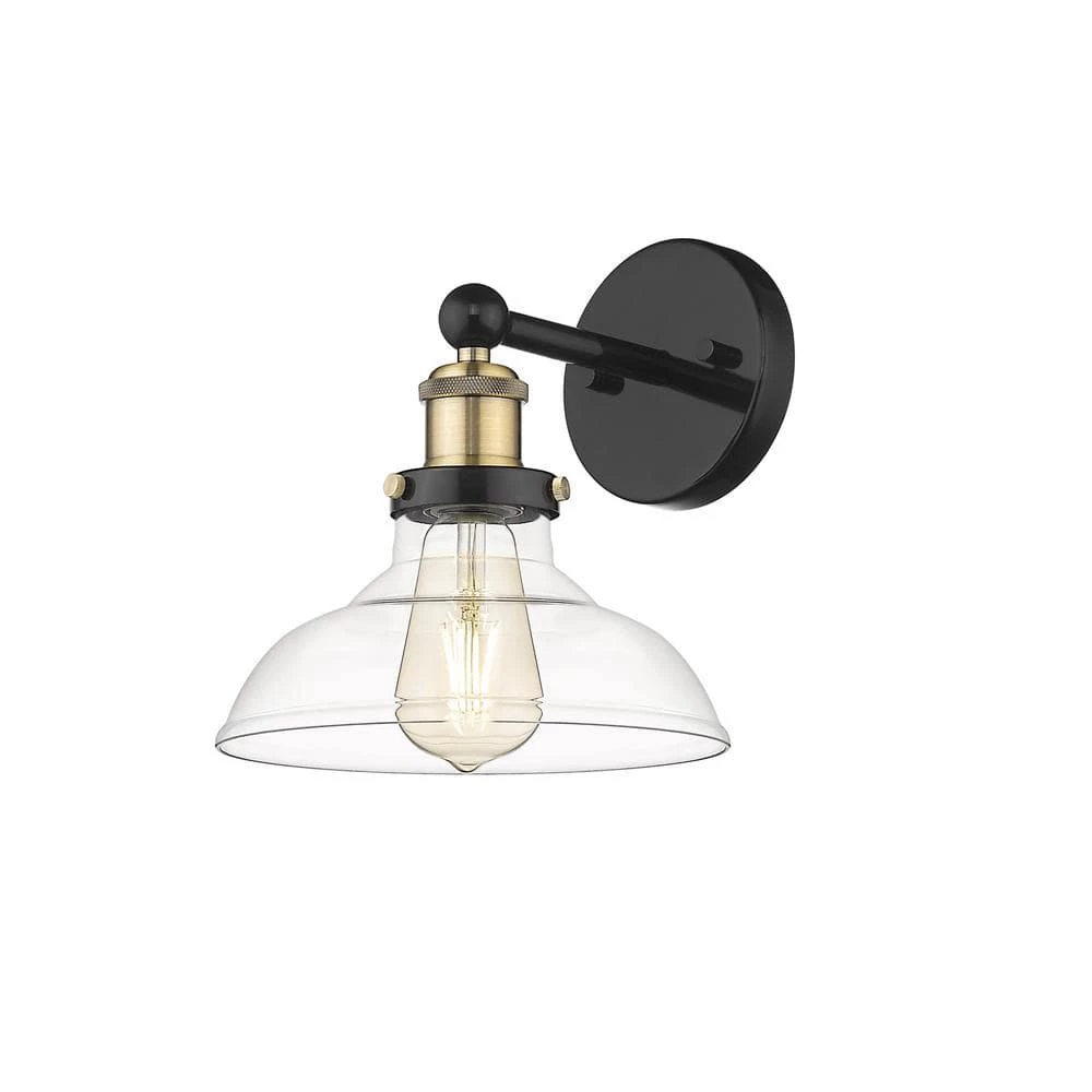 - With its blend of black and gold along with its clear glass shade, this wall mount light is the perfect blend of old-world design with modern touches.