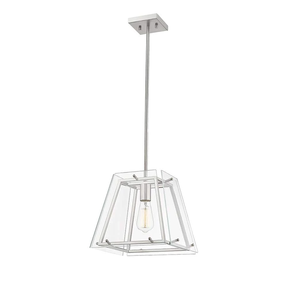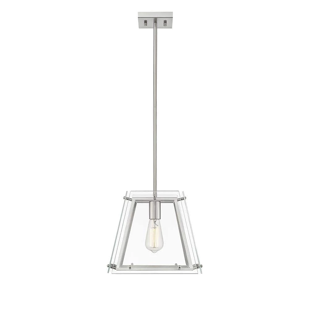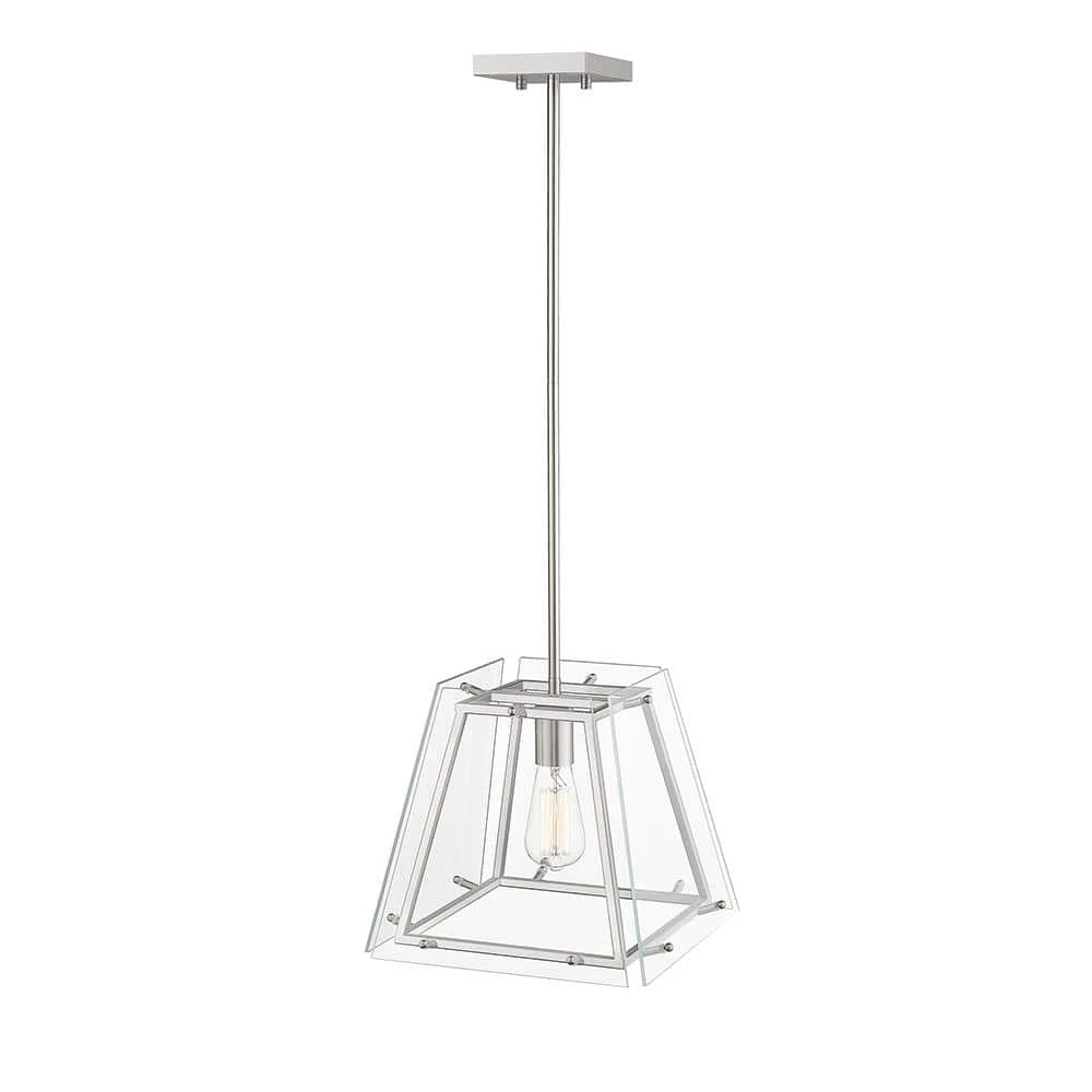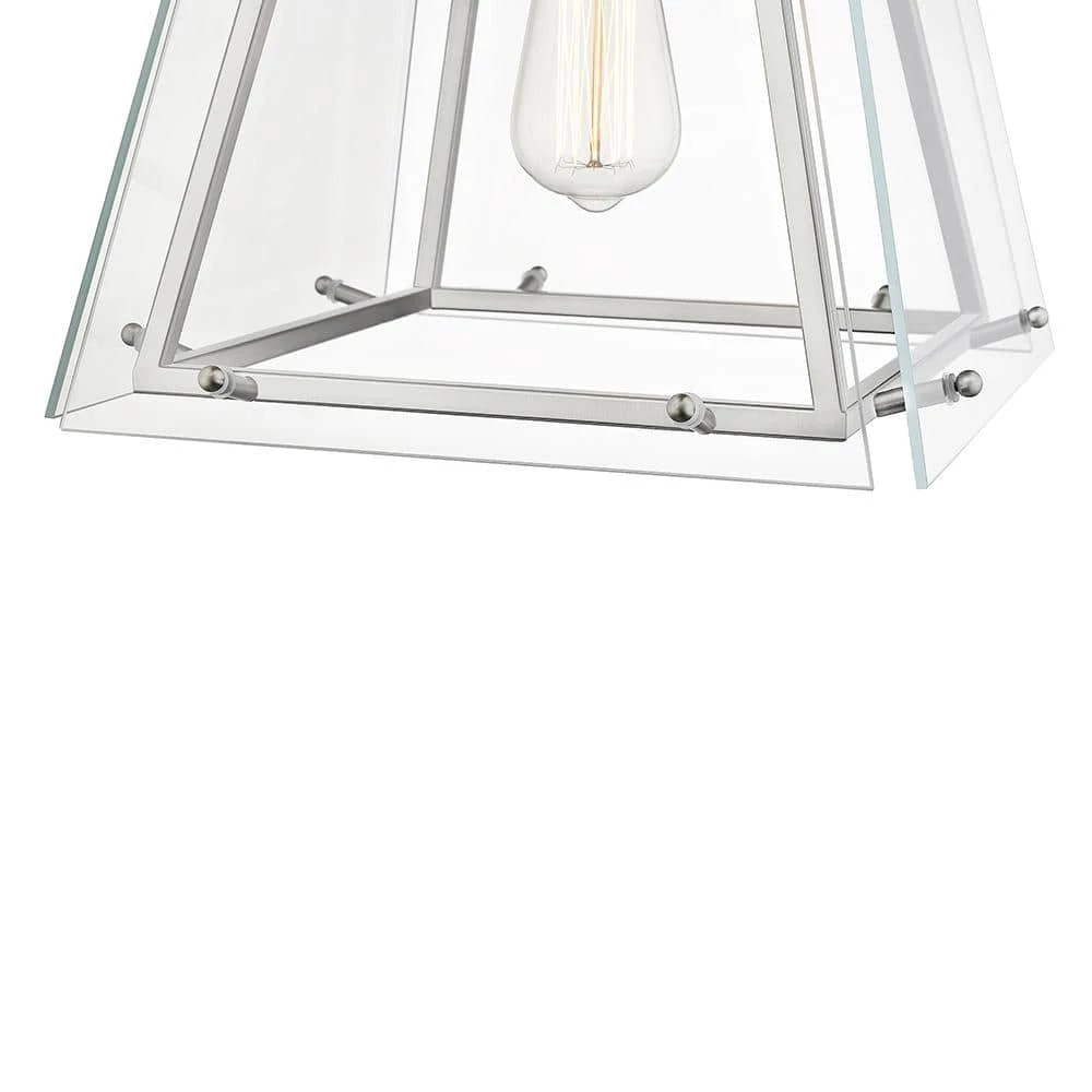 - 1-light brushed nickel lantern in a truncated pyramid shape