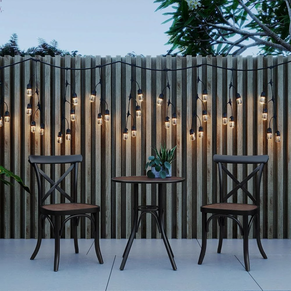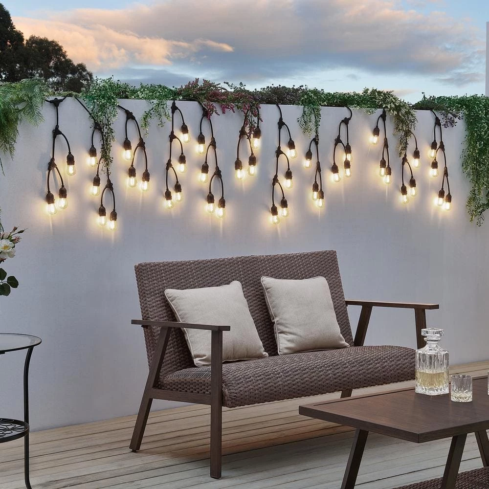 Create a magical wonderland of cascading lights in your yard with the Fence outdoor LED string lights by OVE Decors. A 27-1/2 ft. L black cord suspends 24 small clear glass bulbs glowing with warm white light, with alternate drops of 3-bulbs and 4-bulbs for a pretty effect. Durably designed for outdoor use in all seasons, with 2 replacement bulbs included.