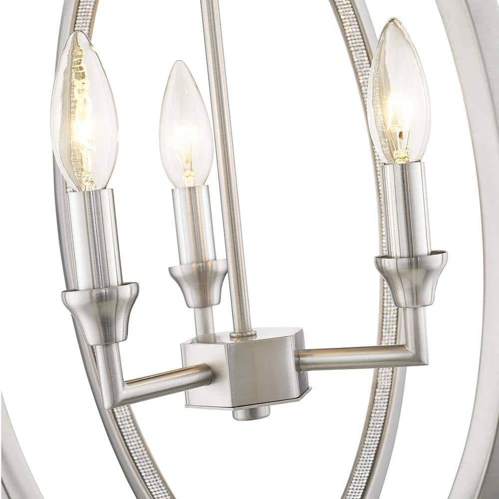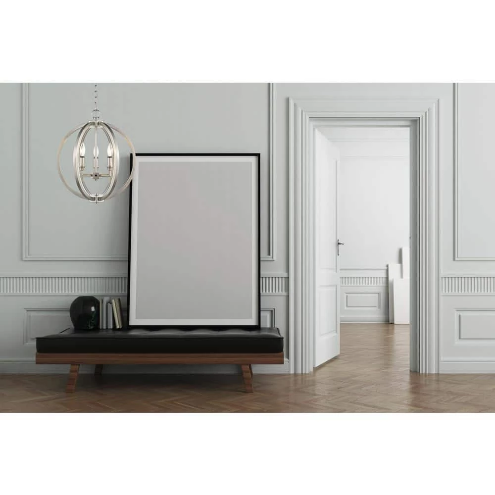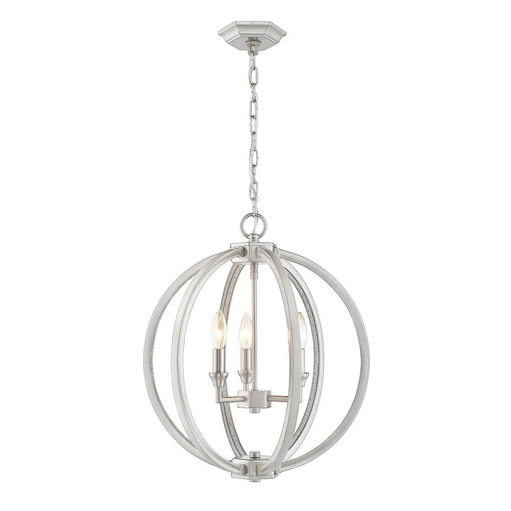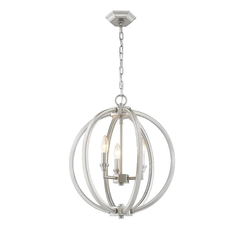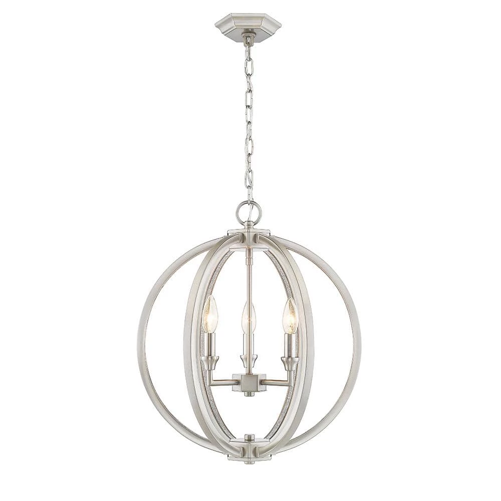 Resonant of the kind of fixtures found in old world libraries. The Gavin II is a spherical pendant light inspired by the celestial rings feature on ancient globes. Three candle like bulbs are held in a floating position in the center of the globe, creating a general classical warmth in any space.