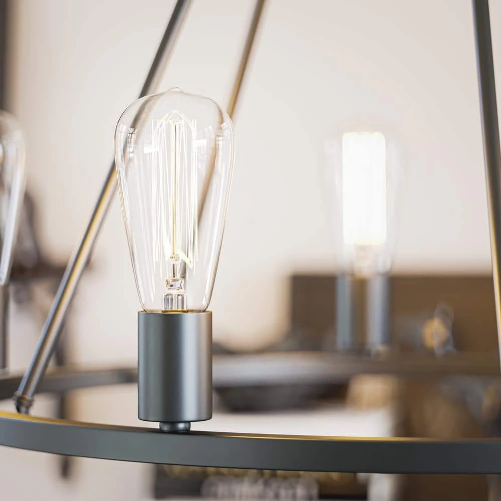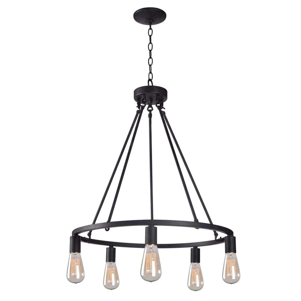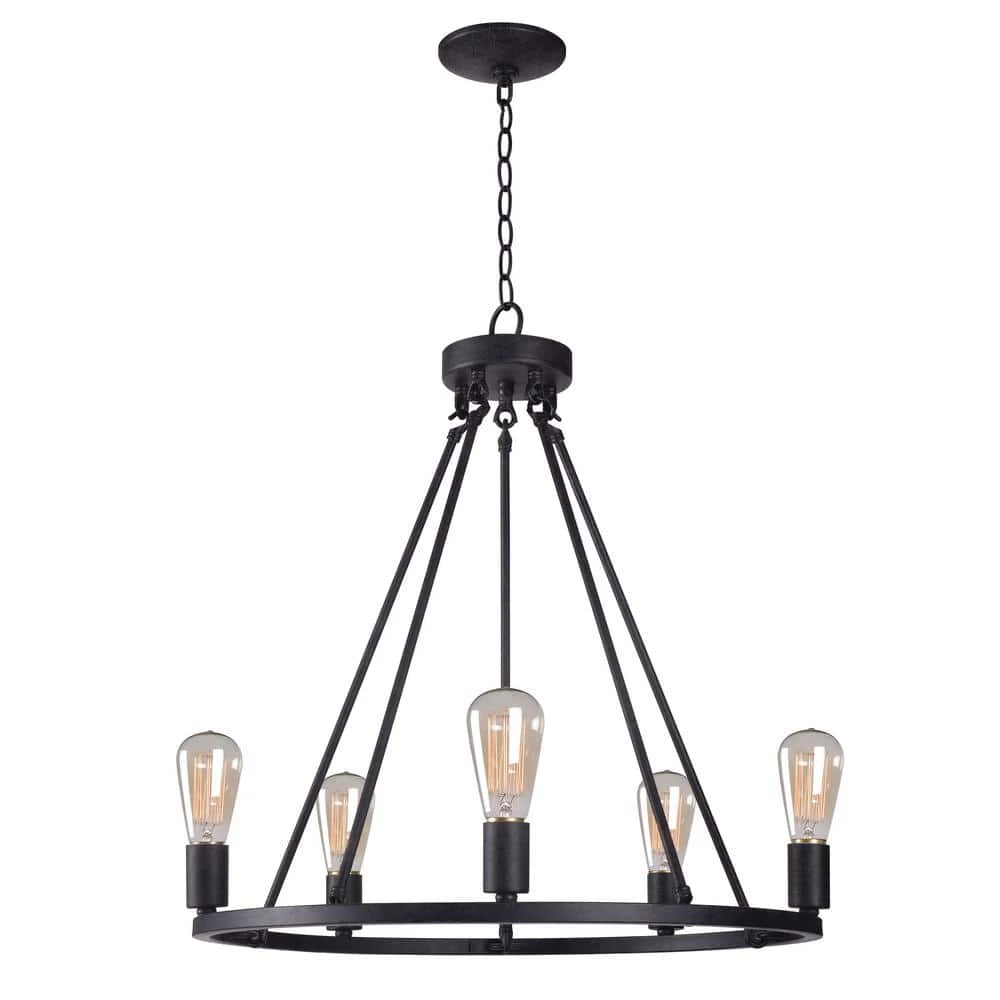 Equally suited for industrial urban living or medieval feasting, this 5 Light Chandelier brings a gothic vibe to your dining room or entryway. A sophisticated forged graphite finish gives the appearance of wrought iron, but with a sleeker contemporary form. The included Edison bulbs gives a vintage flair to the whole piece, allowing you to create excellent mood lighting for your home-cooked meal.