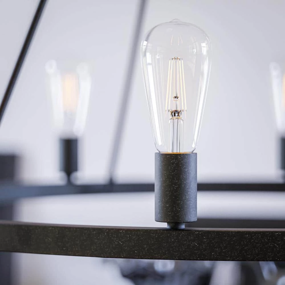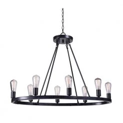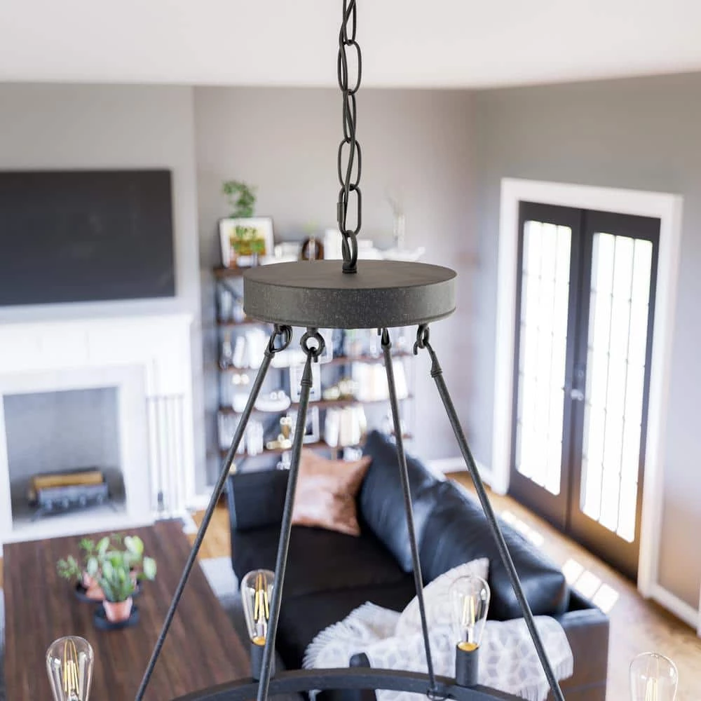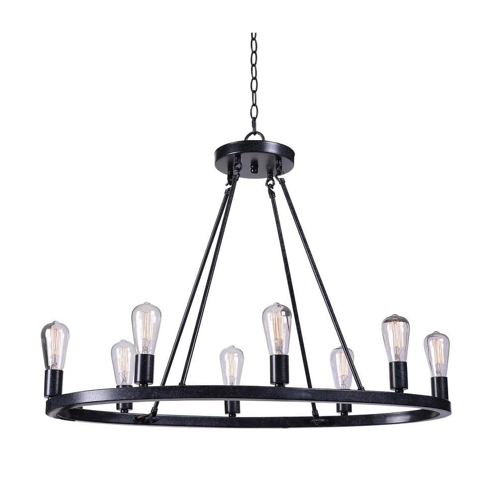 Equally suited for industrial urban living or medieval feasting, this 8 Light Kitchen Island Fixture acts as a chandelier to bring a gothic vibe to your dining room or entryway. A sophisticated forged graphite finish gives the appearance of wrought iron, but with a sleeker contemporary form. The included Edison bulbs gives a vintage flair to the whole piece, allowing you to create excellent mood lighting for your home-cooked meal.