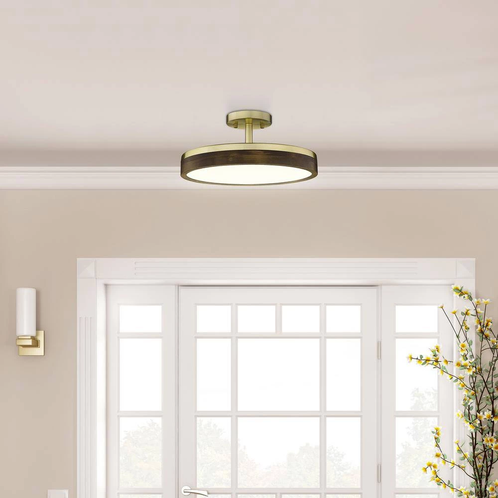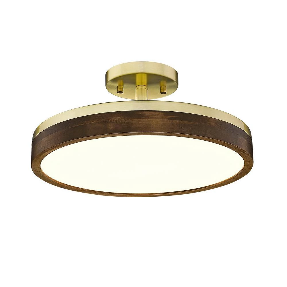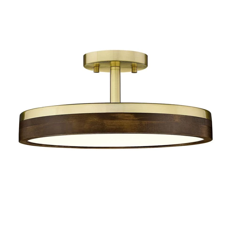 - OVE Decors Kevan 13.78-in Champagne Gold and Walnut LED Semi-Flush Mount Light, perfect for many decorating styles