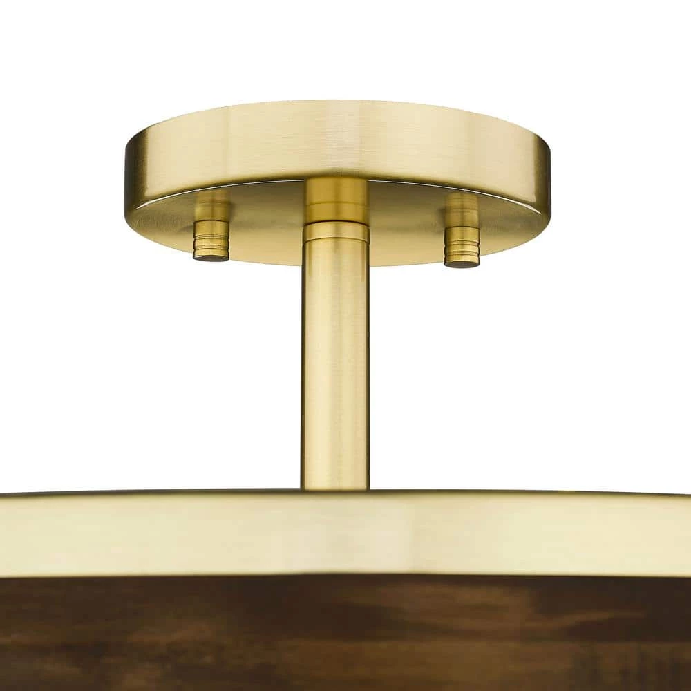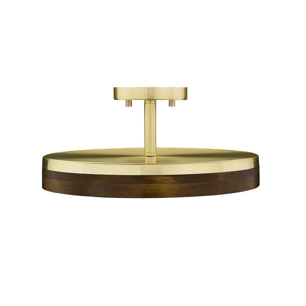 - Champagne Gold and Walnut finish semi-flush mount ceiling fixture
