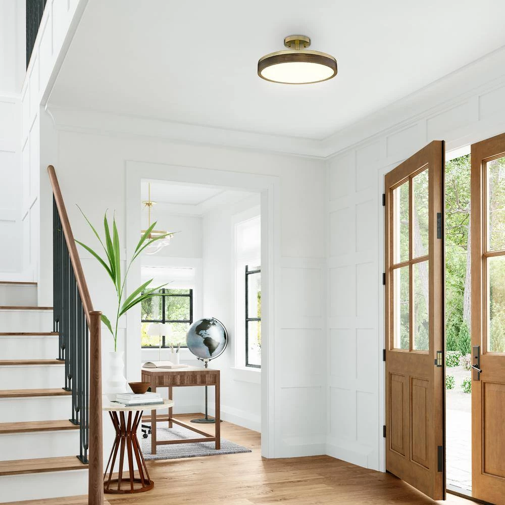 Let the Kevan light fixture by OVE Decors take center stage in your stylish home. Its on-trend Champagne Gold trim and Walnut wood finish strike a perfect balance that’s as at home in transitional settings as it is in homes with a modern farmhouse vibe. Imagine this semi-flush mount ceiling light brightening up your entryway, powder room or bedroom with light and style. It comes with mounting hardware included for quick and easy installation.