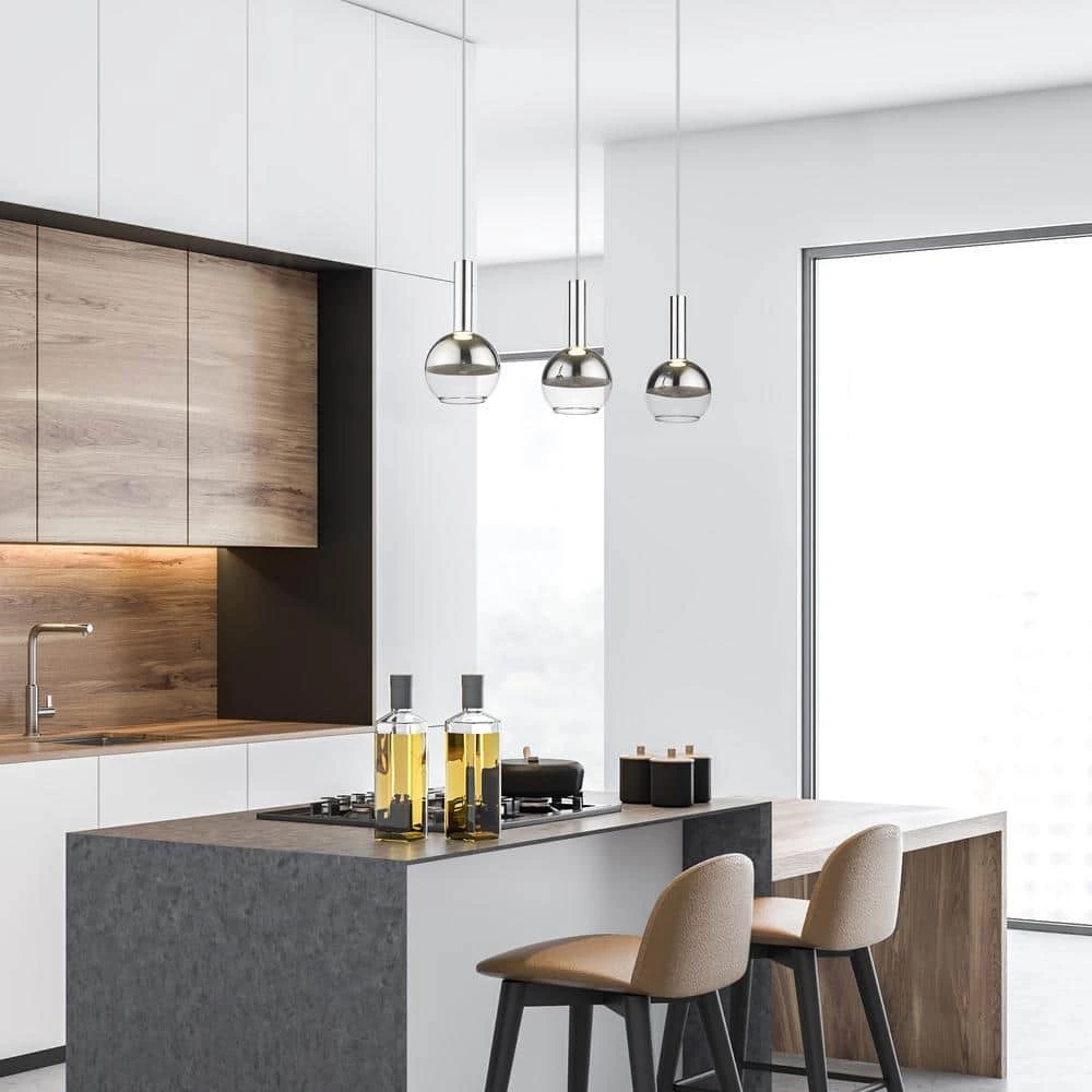The modern Kim ceiling pendant light with 3 hanging globe pendants marries form and function elegantly, offering a decor solution that’s both easy to install and easy on the eye. By incorporating chrome and mirror finishes to the hardware and onto the globe shades, it embraces a chic minimalism that is easily applied to all contemporary renovation trends, while its use of COB LED bulbs is energy efficient and environmentally considerate.