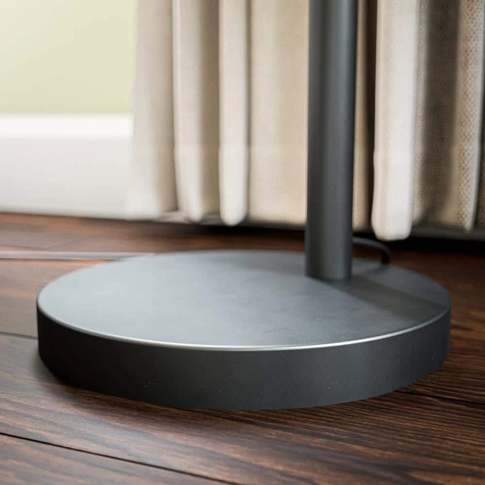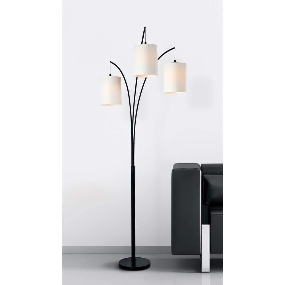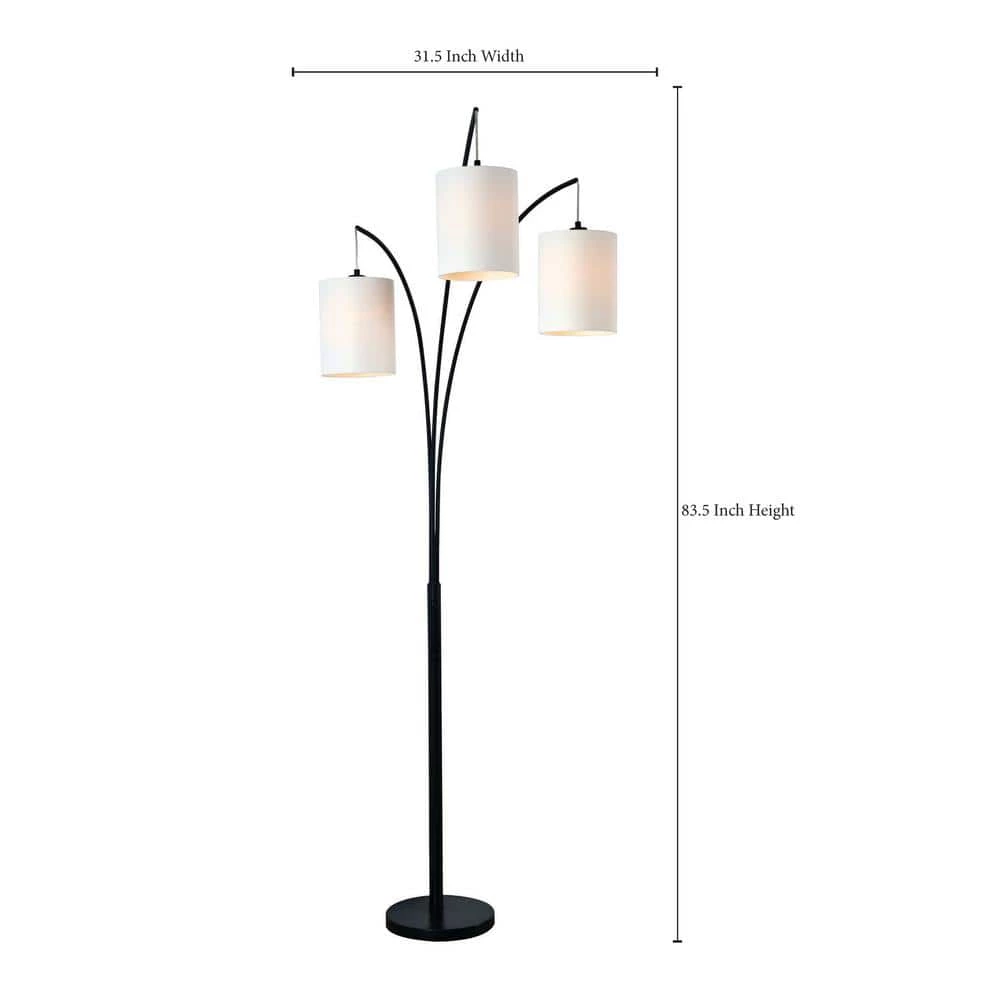 The sweeping arc of this contemporary floor lamp and its three white drum shades emit a stylish mid-century modern tone. It’s rich sleek black finish will add a touch of mystique to any living space. Add some style to your living space with the Leah Arc Floor Lamp.