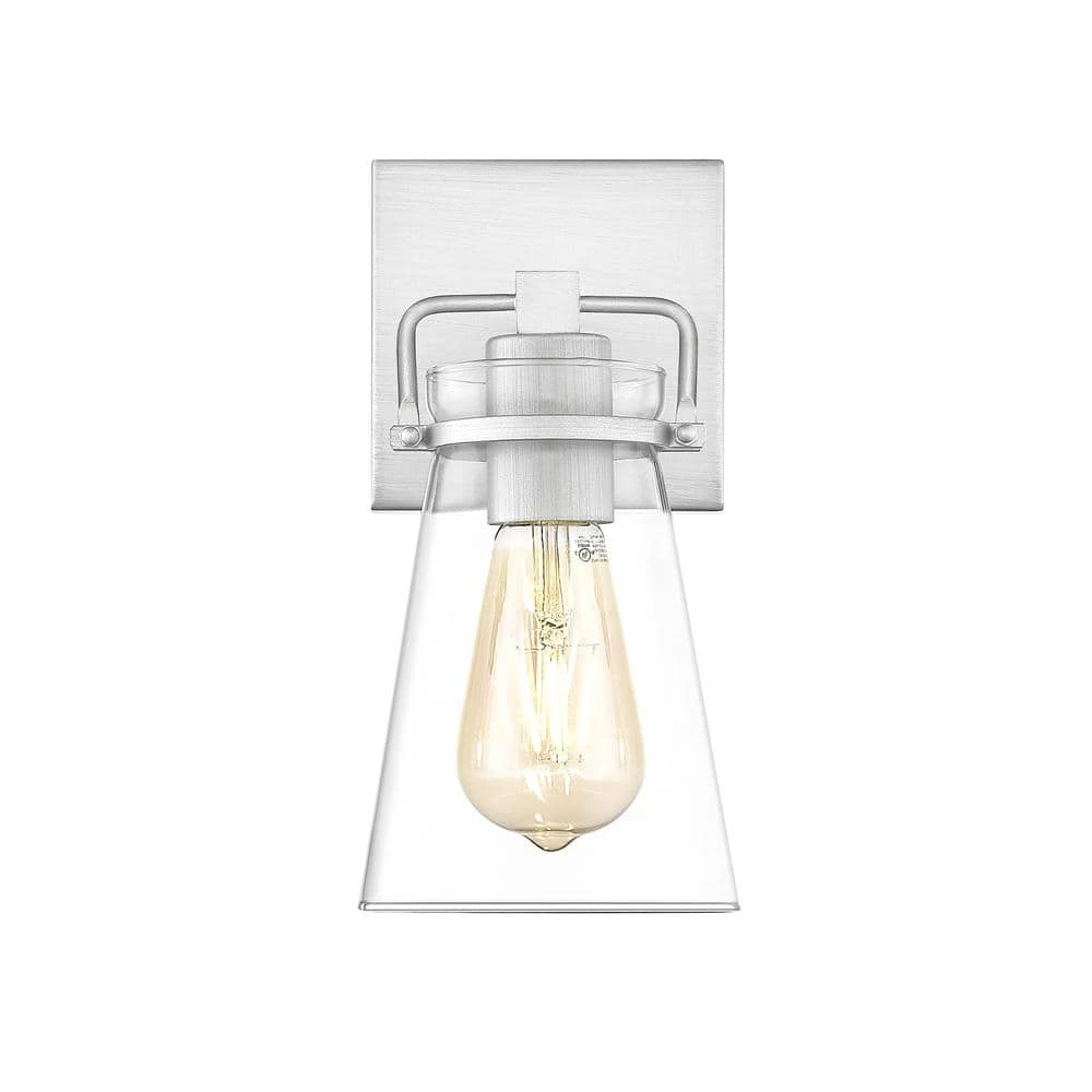 Polished minimalism shines in this combination set of 2 Lois 1-light wall sconces by OVE Decors. With its modern clear glass conical shade and brushed nickel finished fittings, the Lois adds a simple and serene touch to any room. A vintage inspired warm white exposed filament ENERGY STAR certified LED bulb is fully dimmable for perfect mood lighting.