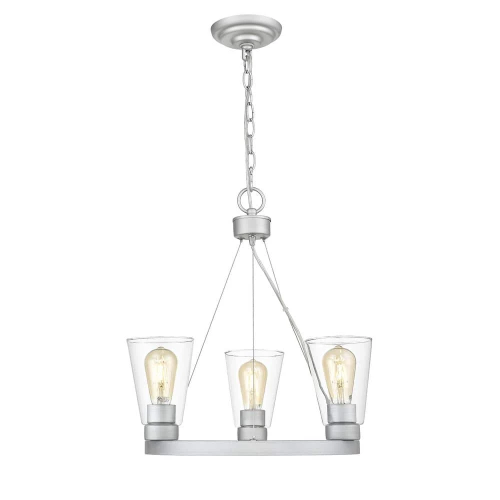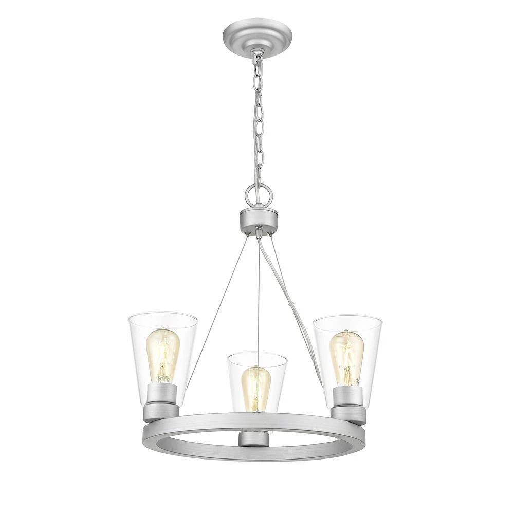 Polished minimalism shines in the Lois V 3-light ring chandelier by OVE Decors. With its modern clear glass conical upright shades and brushed nickel finished fittings, the Lois adds a simple and serene touch to any room. 3 vintage inspired warm white exposed filament ENERGY STAR certified LED bulbs are fully dimmable for perfect mood lighting.