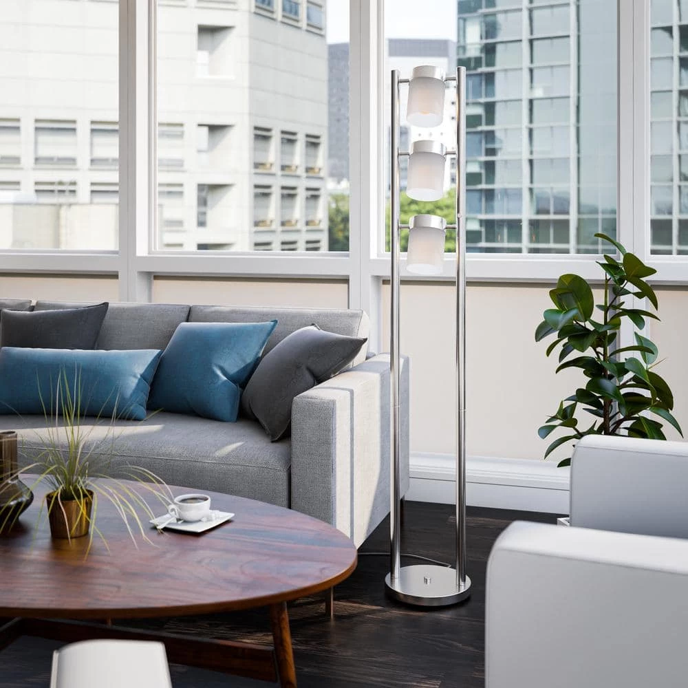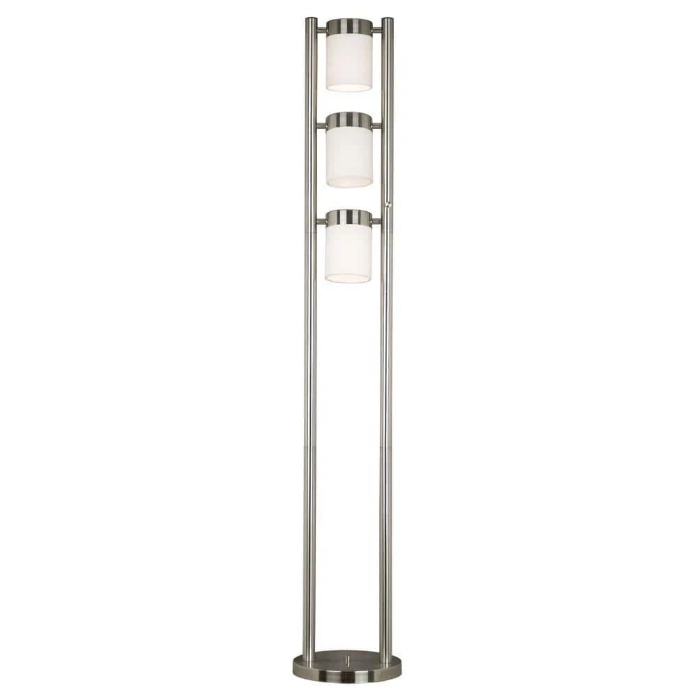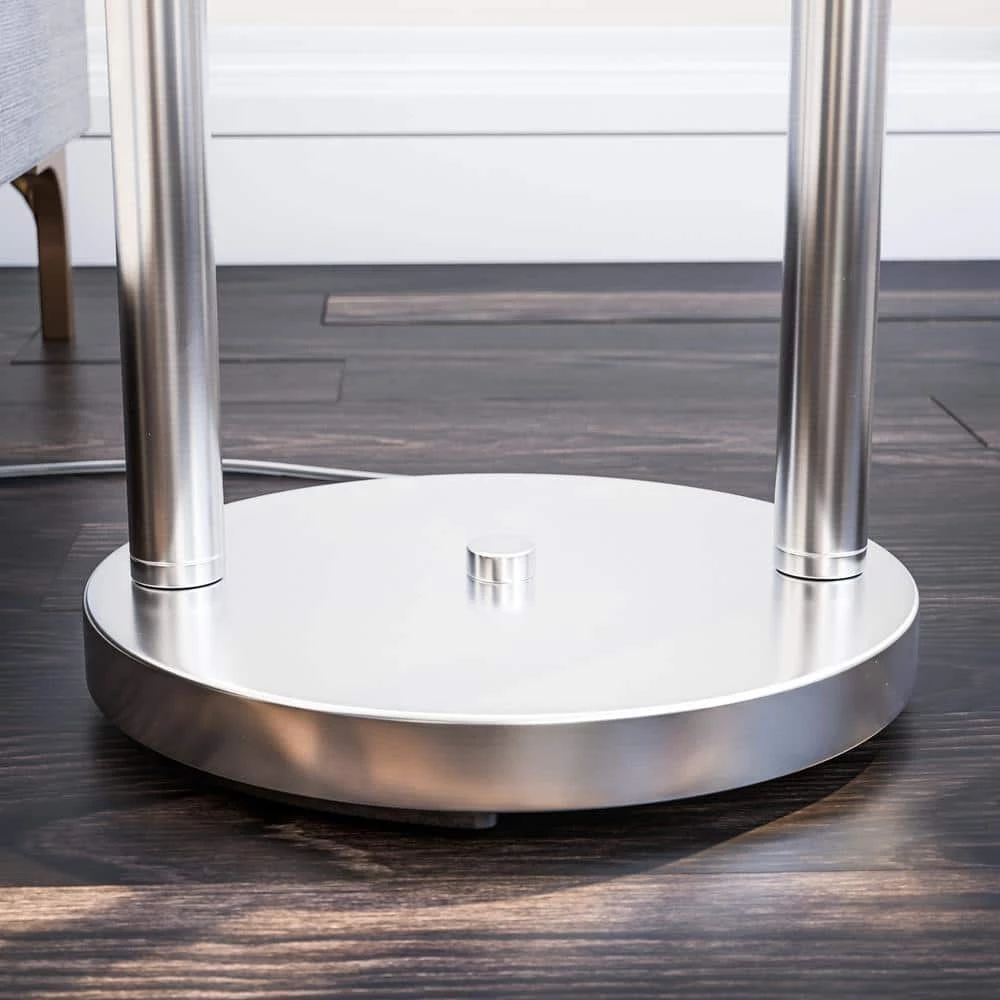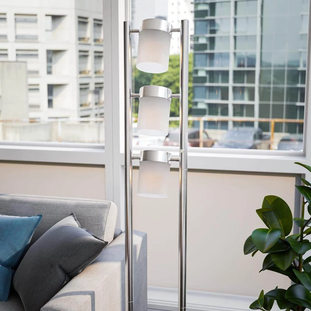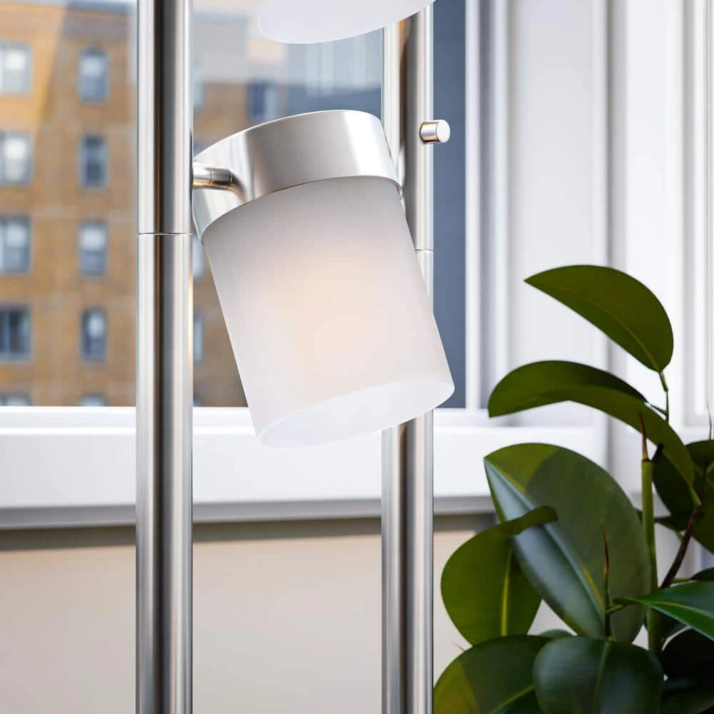 It’s showtime! This stunning showpiece has not just one, but three adjustable light sources to make your home a stage for your contemporary furniture and accents. An industrial form gets a sleek modern brushed steel finish, ideal for placing in the corner of your urban-loft style living room to create dramatic down lighting or bright up lighting.