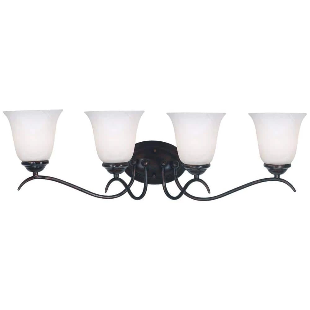 - – BATHROOM LIGHTING: The four curved arms and alabaster white glass shades grace the wall above your vanity for a rich accent in your master bathroom.