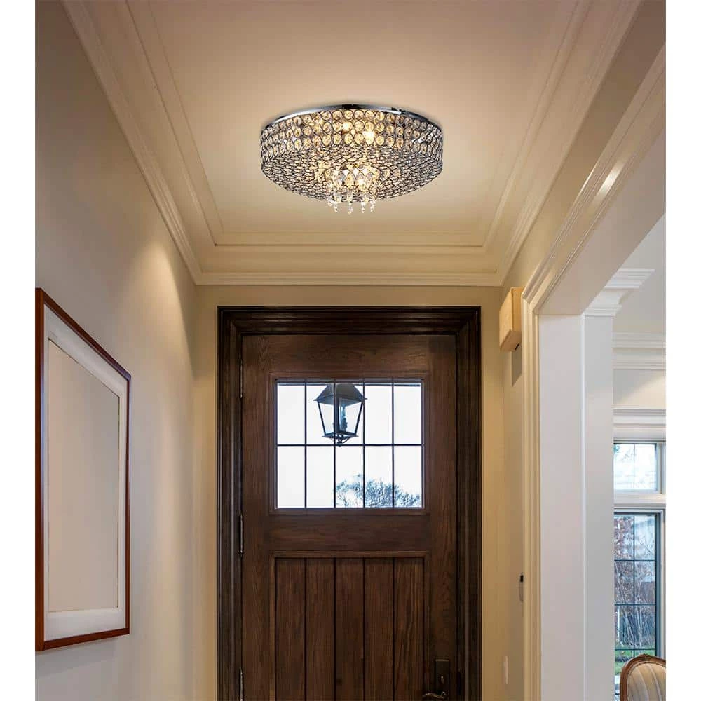 - Crystal ceiling-mount fixture makes a stunning display for your foyer, hall, dining room and more