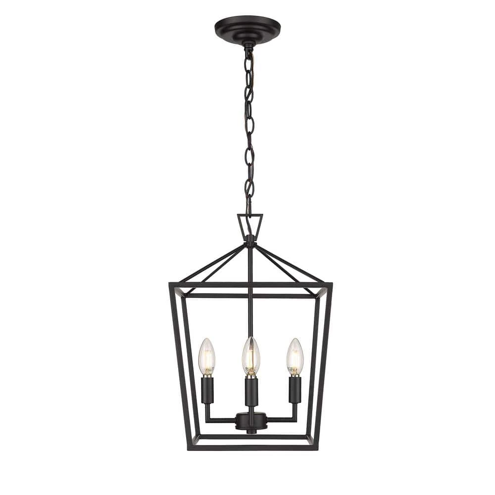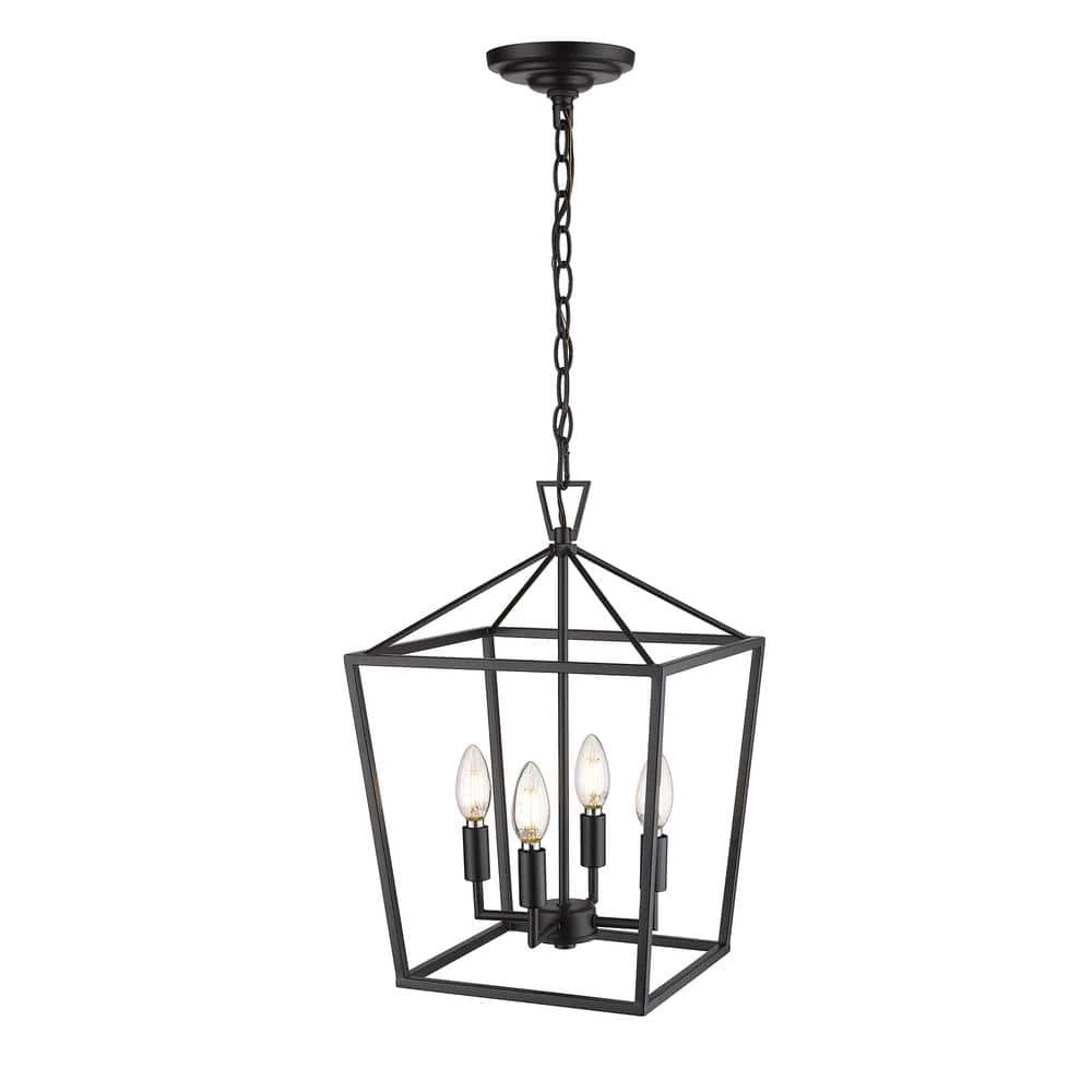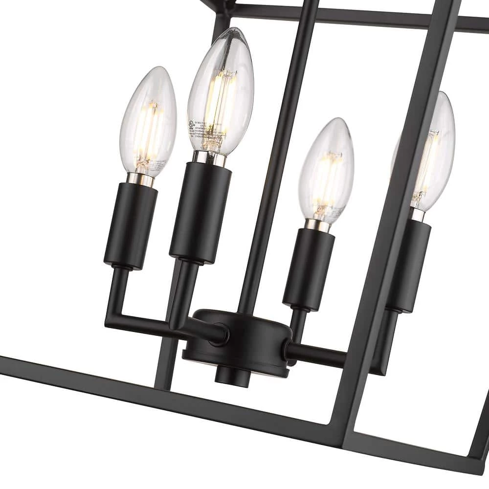 - 4-light pendant with a black metal cage design