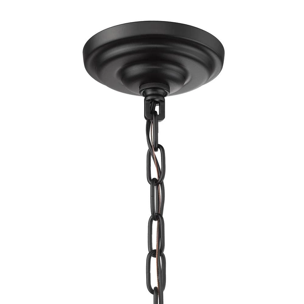 - Transitional 4-light pendant with black metal cage design and chain suspension cable