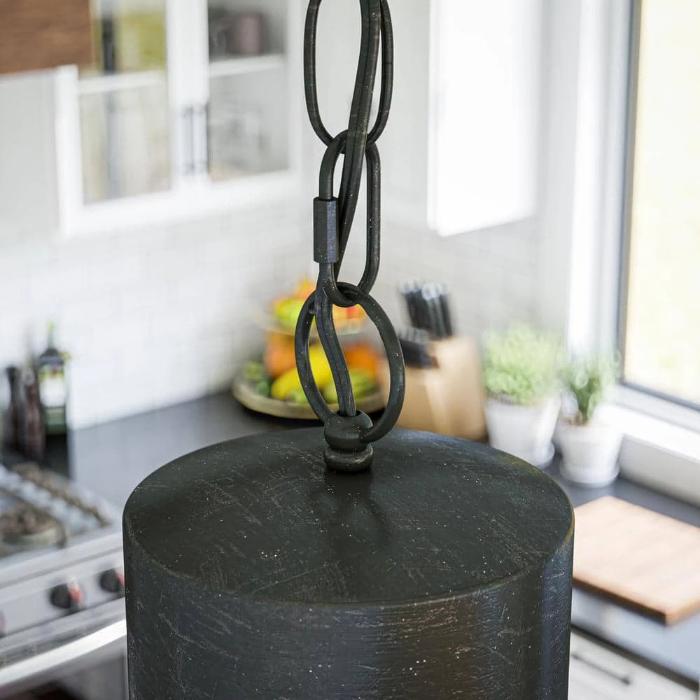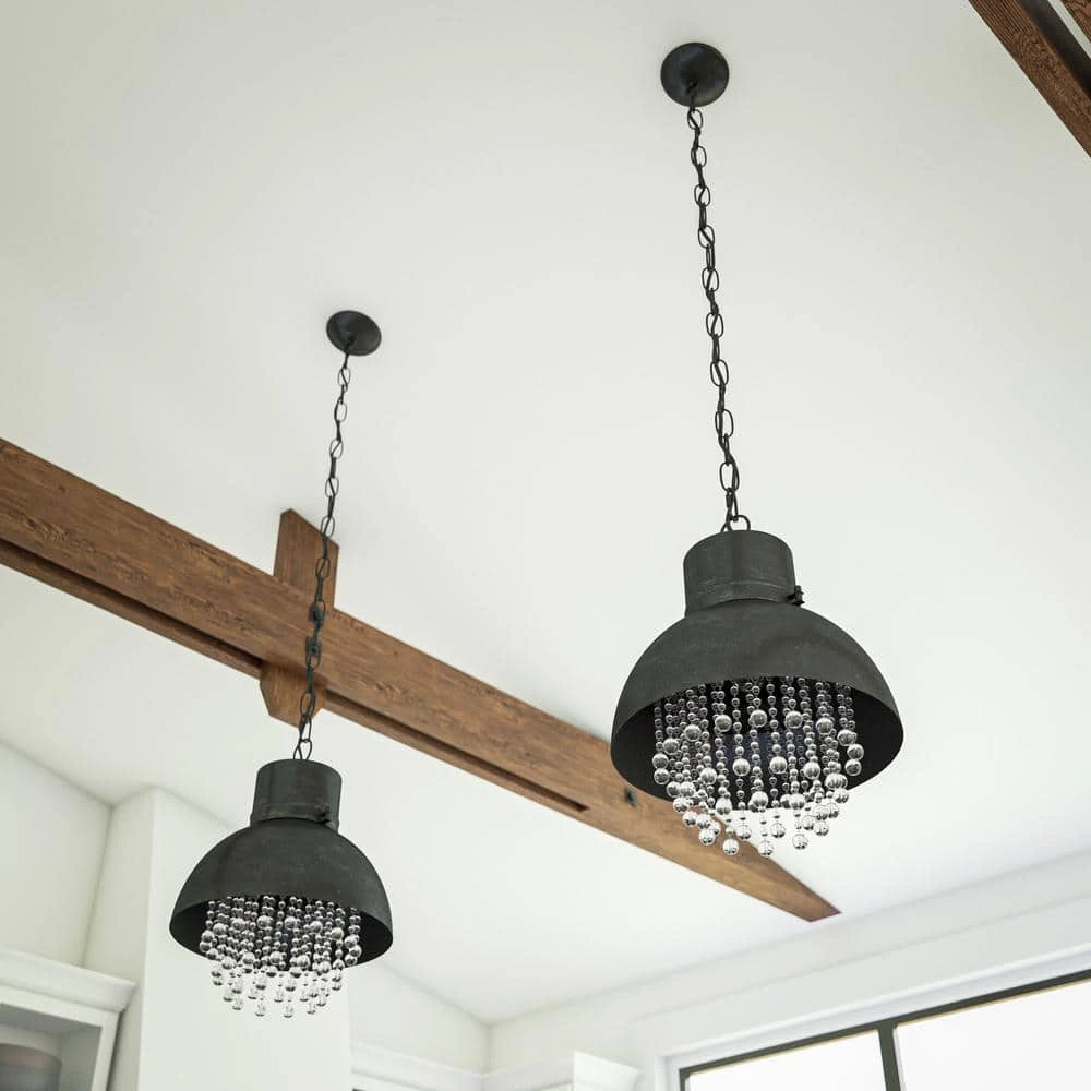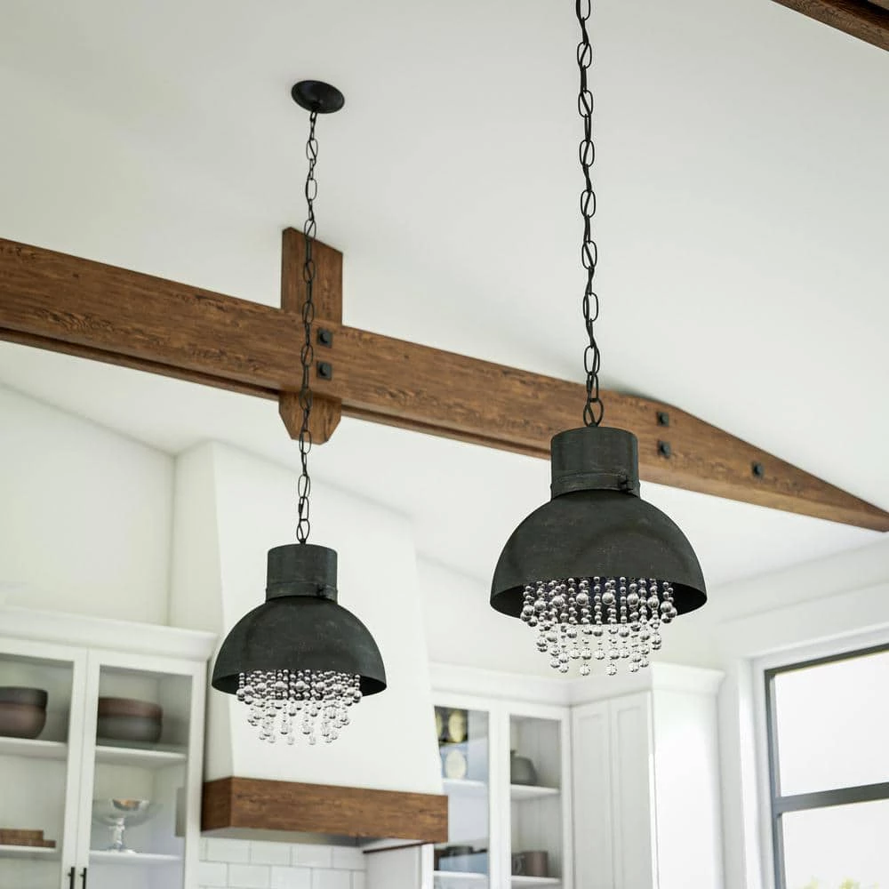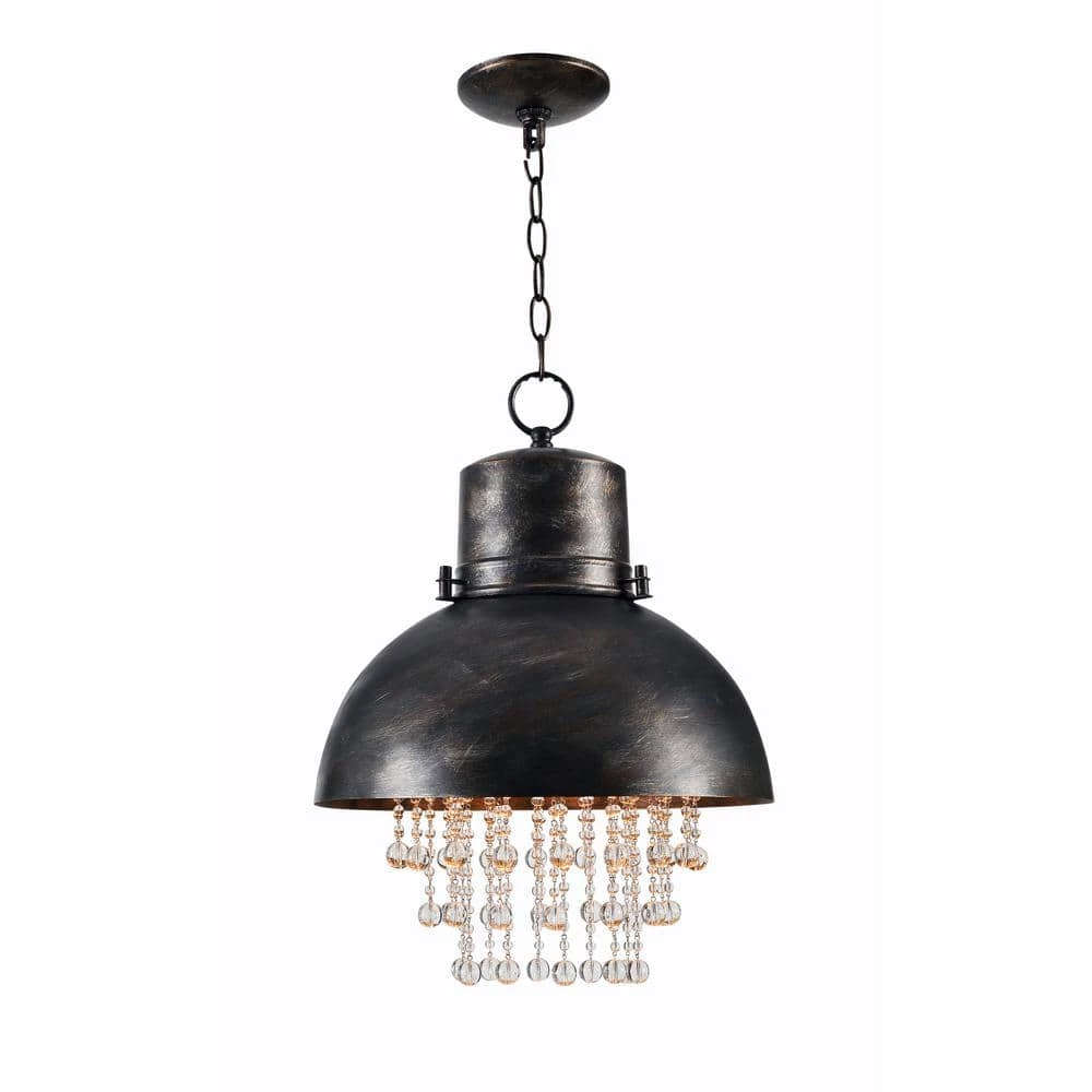 This glam pendant is where rustic lines and a gracefully aged finish intersect with glamourous undertones of shimmering glass accents. Vaulted ceiling compatible with adjustable height chains, your guests will be dazzled by the crystal-like accents that catch the warm light escaping from the aged metal shade. Exceptional for downlighting, install this pendant in pairs over an industrial inspired kitchen countertop to add glamour fueled flair and excellent task lighting to your meal prep station. With style possibilities galore, this dynamic fixture can infuse industrial, coastal, and glam-inspired style in any living room, entryway, or dining room.