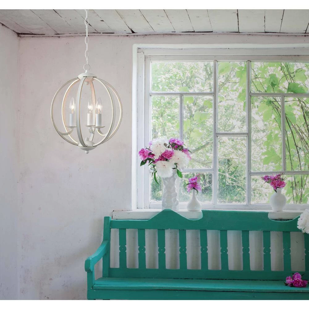 - WONDERFULLY WEATHERED: a lightly weathered white finish is expertly applied with delicate gold highlights that catch in the warm glow of the exposed candelabra bulbs