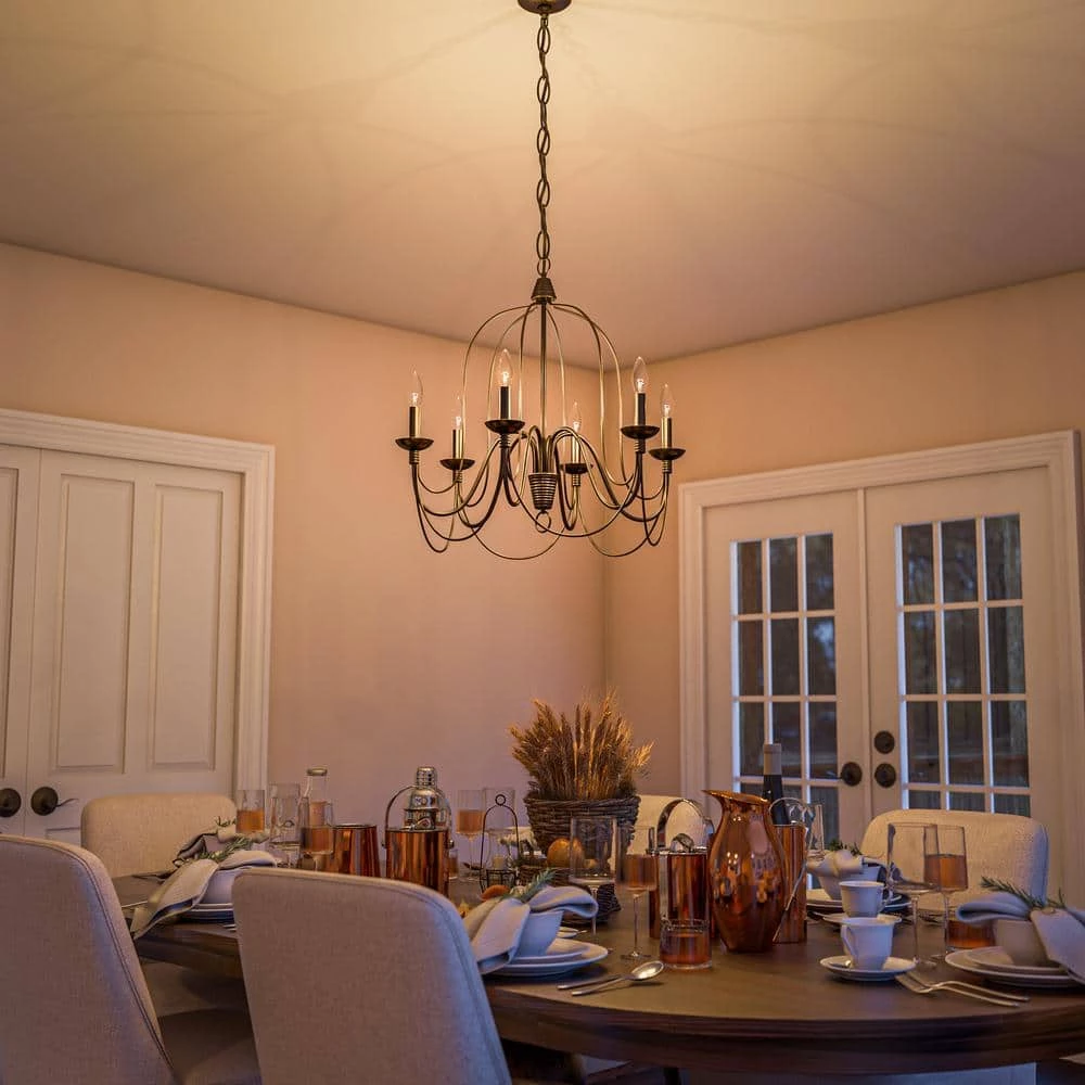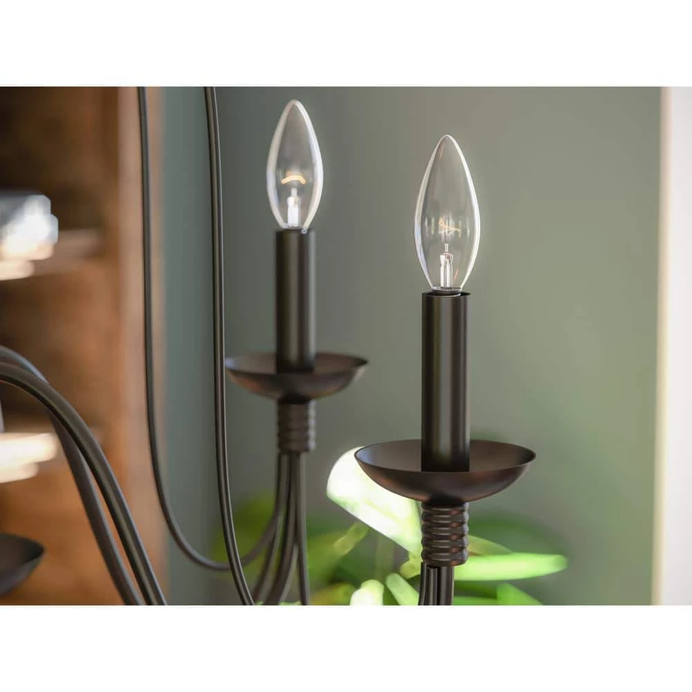 - Requires 6-60 Watt Maximum E12 Candelabra Base Bulbs or LED Equivalent