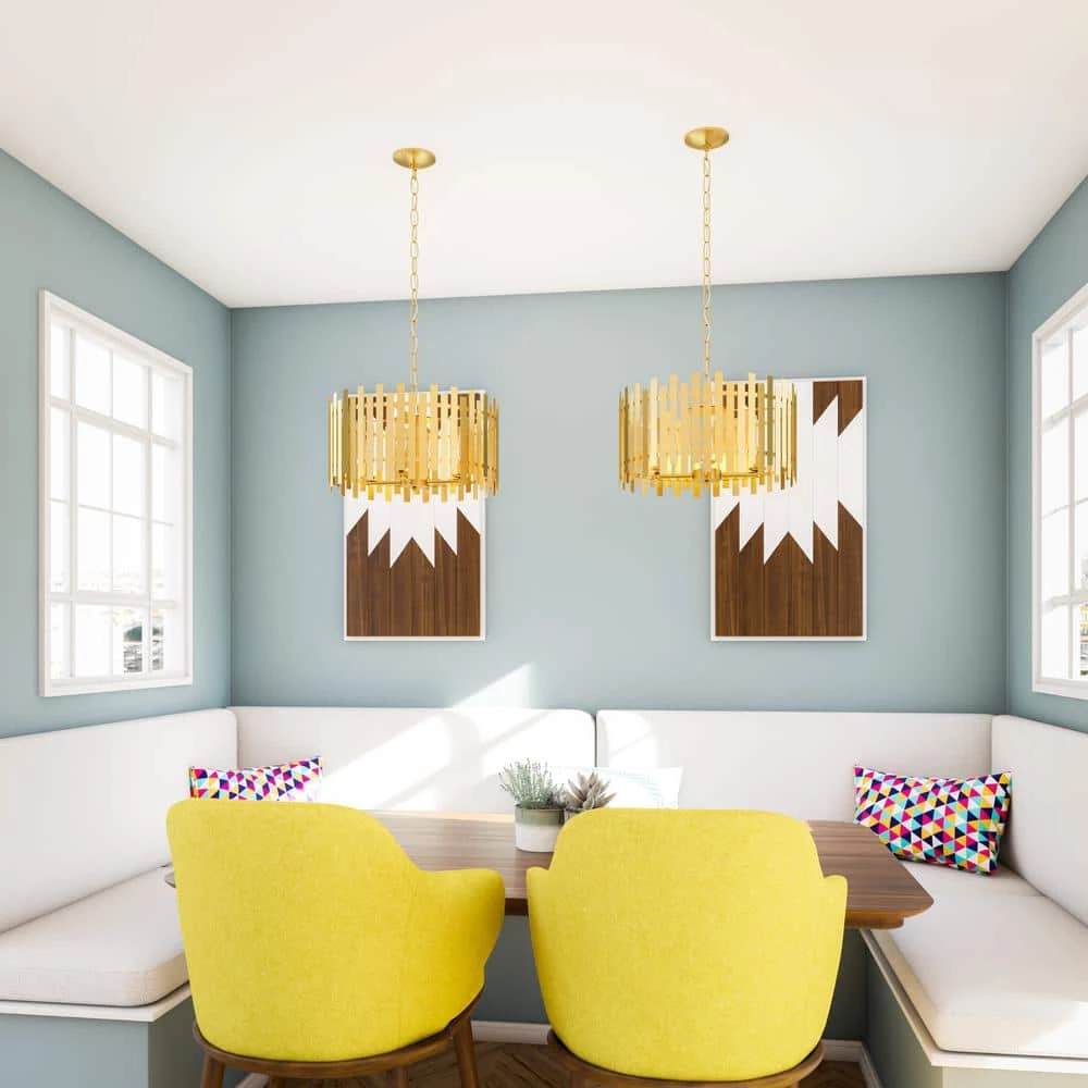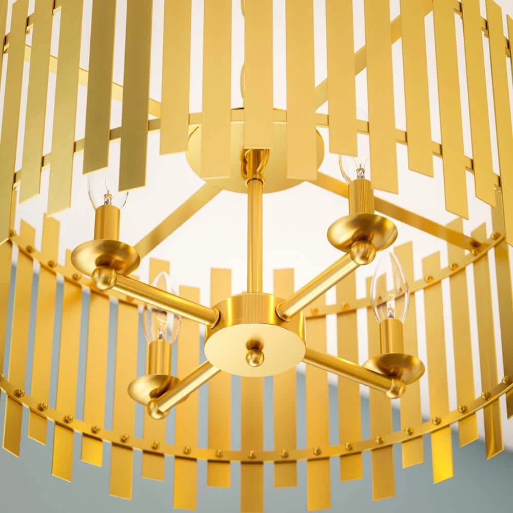 Perfectly suited for a luxe living life, this golden fixture drips with so much fashionista approved glam. This 4 light pendant is rocking a 20-inch width diameter frame with a compact 11-inch height, allowing you to live life large even in small living spaces. Outfitted with four candelabra style bulbs, this chic pendant can illuminate a living area with stunning detail. The picketed frame of alternating shiny gold and matte gold finished rectangles allows enough light to escape for room filling illumination while the open bottom represents an exceptional source of downlighting – excellent for performing kitchen tasks like food preparation or sipping on a homemade mixed drink with your dinner guests. Stop living your glam inspired life under less than inspired overhead lighting – this pendant has all the gilt and glam needed to launch your living space into high style overdrive.