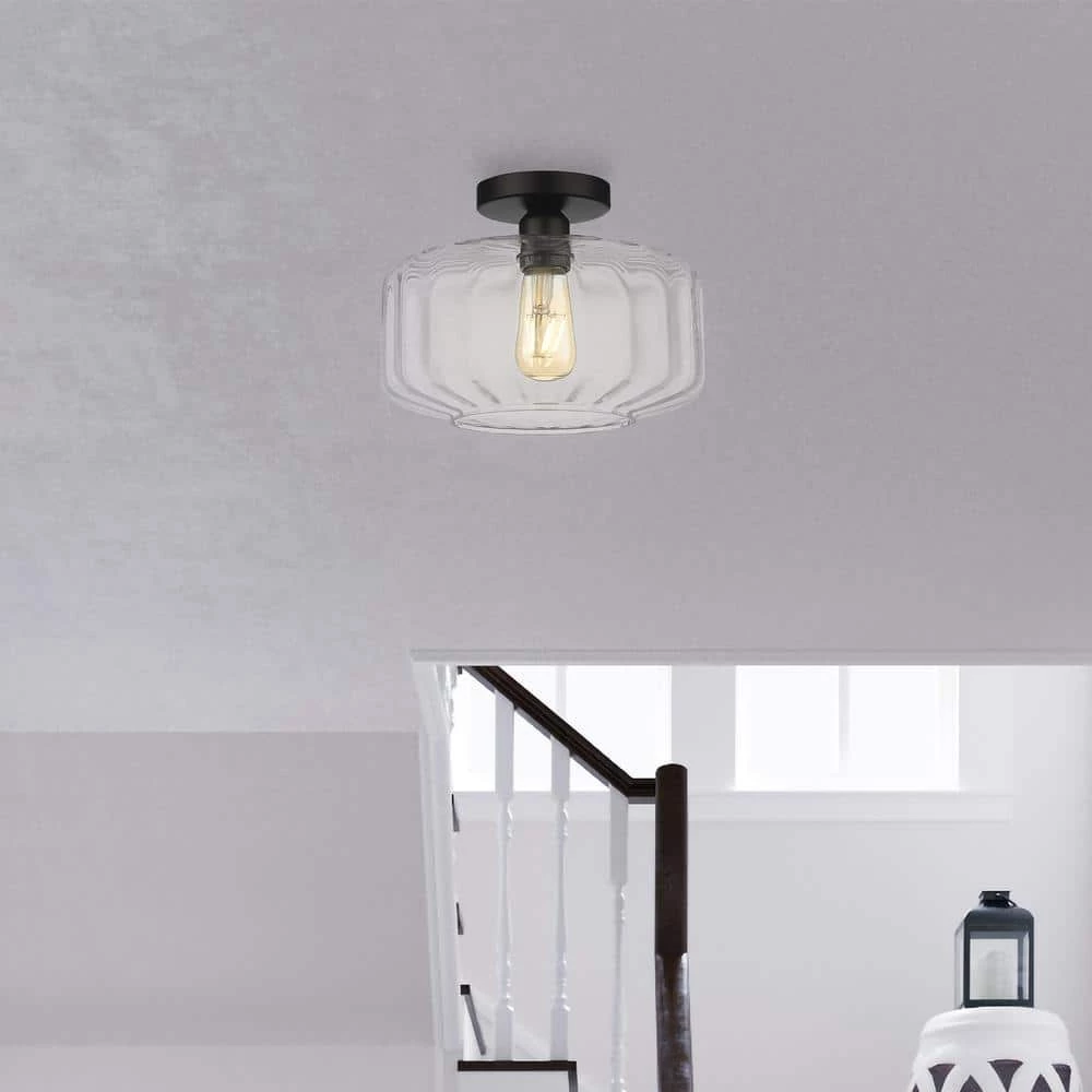 - OVE Decors Preston 11 in. black iron semi-flush mount light, a modern and subtle addition to any room in your home