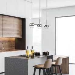 Kim 25 in. 3-Light Integrated LED Chrome and Clear Glass Ceiling Pendant Light by OVE Decors