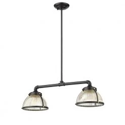 Exeter 2-Light Painted Black Billiard Pendant Light with Faceted Glass Shade by OVE Decors