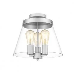Lois 13 in. 3-Light Brushed Nickel Semi-Flush Mount with Clear Glass Shade by OVE Decors