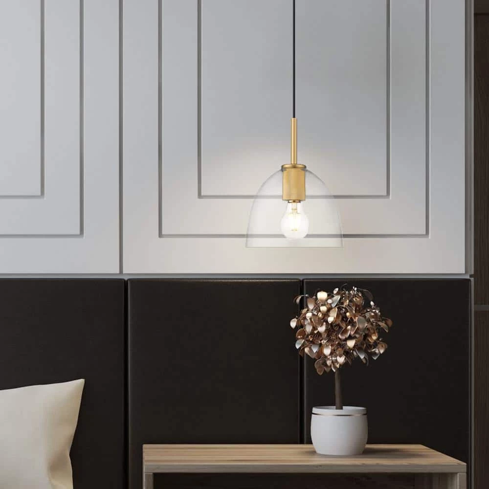 - 1 downward-facing bulb with transparent shade creates a mixed light distribution